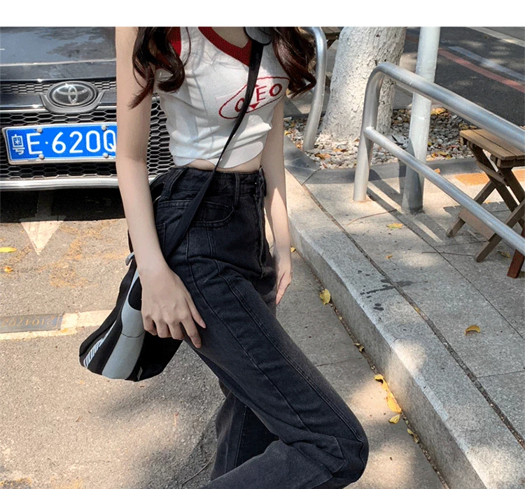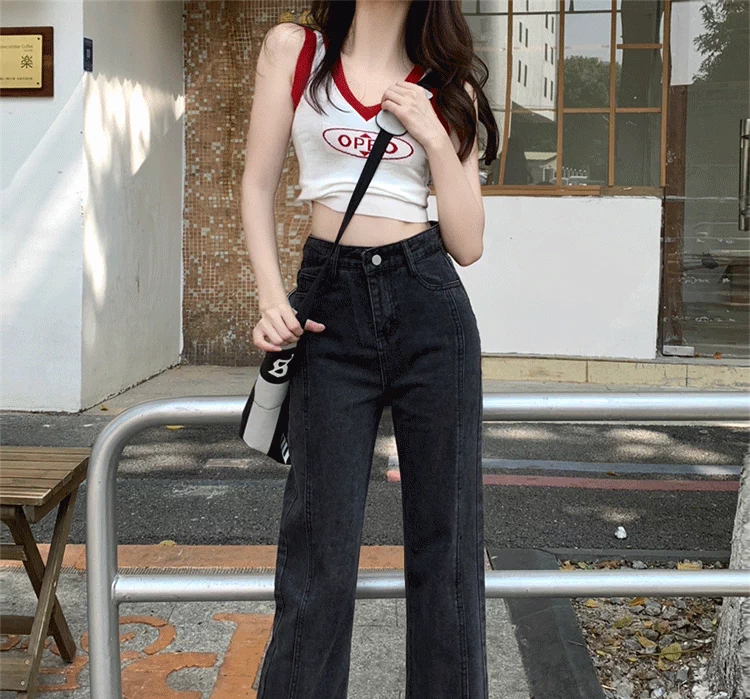 - Quần jean ống đứng dáng lê dành cho nữ, cỡ lớn, phong cách mới đầu thu, lưng cao, dáng rộng, tôn dáng, quần ống rộng