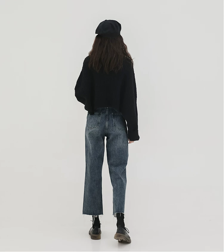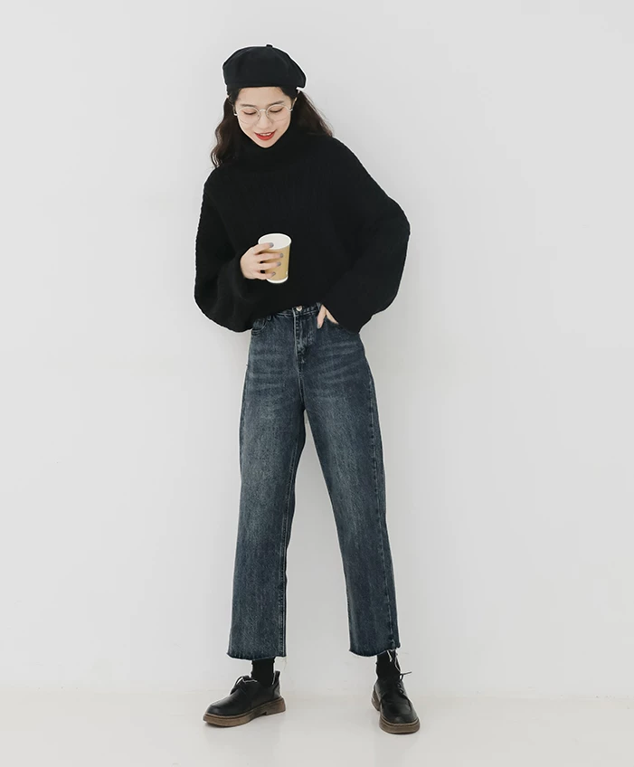 - Quần jean ống đứng dáng lê dành cho nữ, đầu thu, cỡ lớn, nhỏ nhắn, lưng cao, dáng rộng, tôn dáng, quần ống lửng