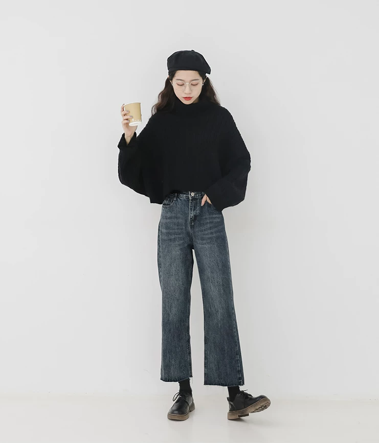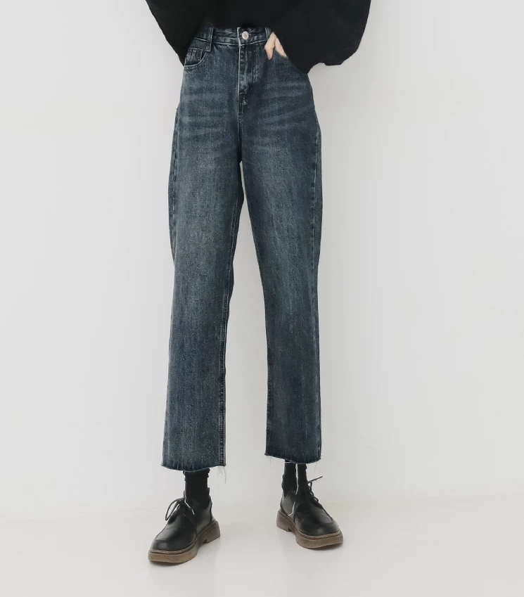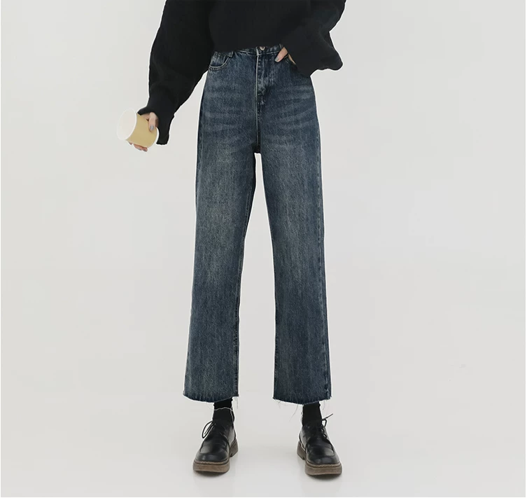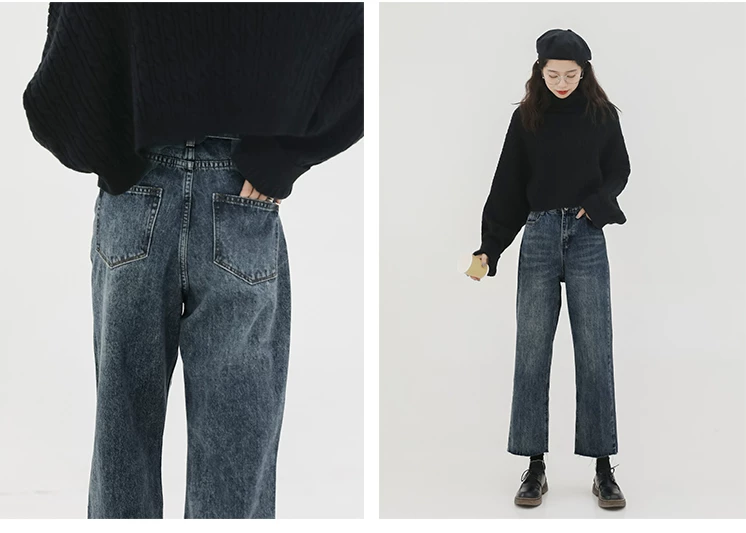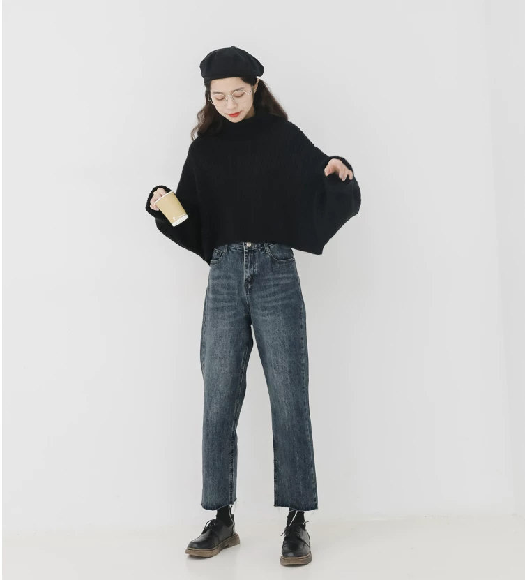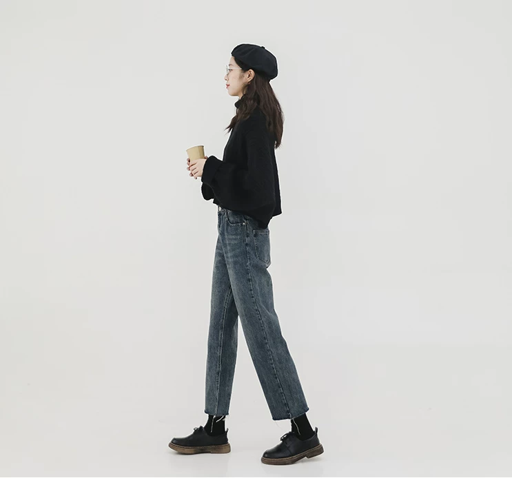 Quần jean ống đứng dáng lê dành cho nữ, đầu thu, cỡ lớn, nhỏ nhắn, lưng cao, dáng rộng, tôn dáng, quần ống lửng