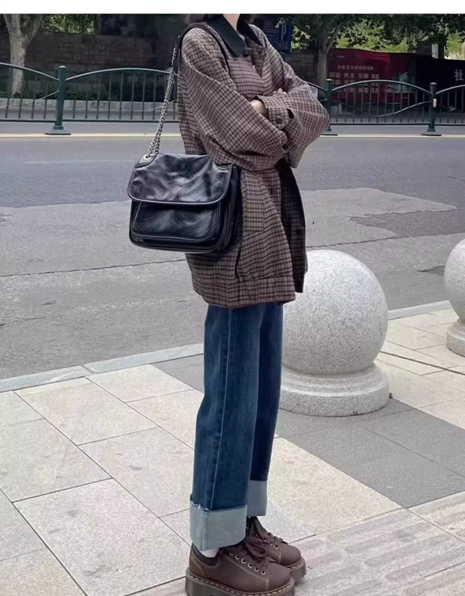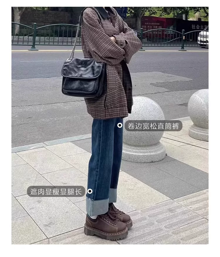 - Quần jean ống đứng dáng lê dành cho nữ, kiểu dáng mùa thu mới, cỡ lớn, lưng cao, co giãn, che hông, quần thuốc lá tôn dáng