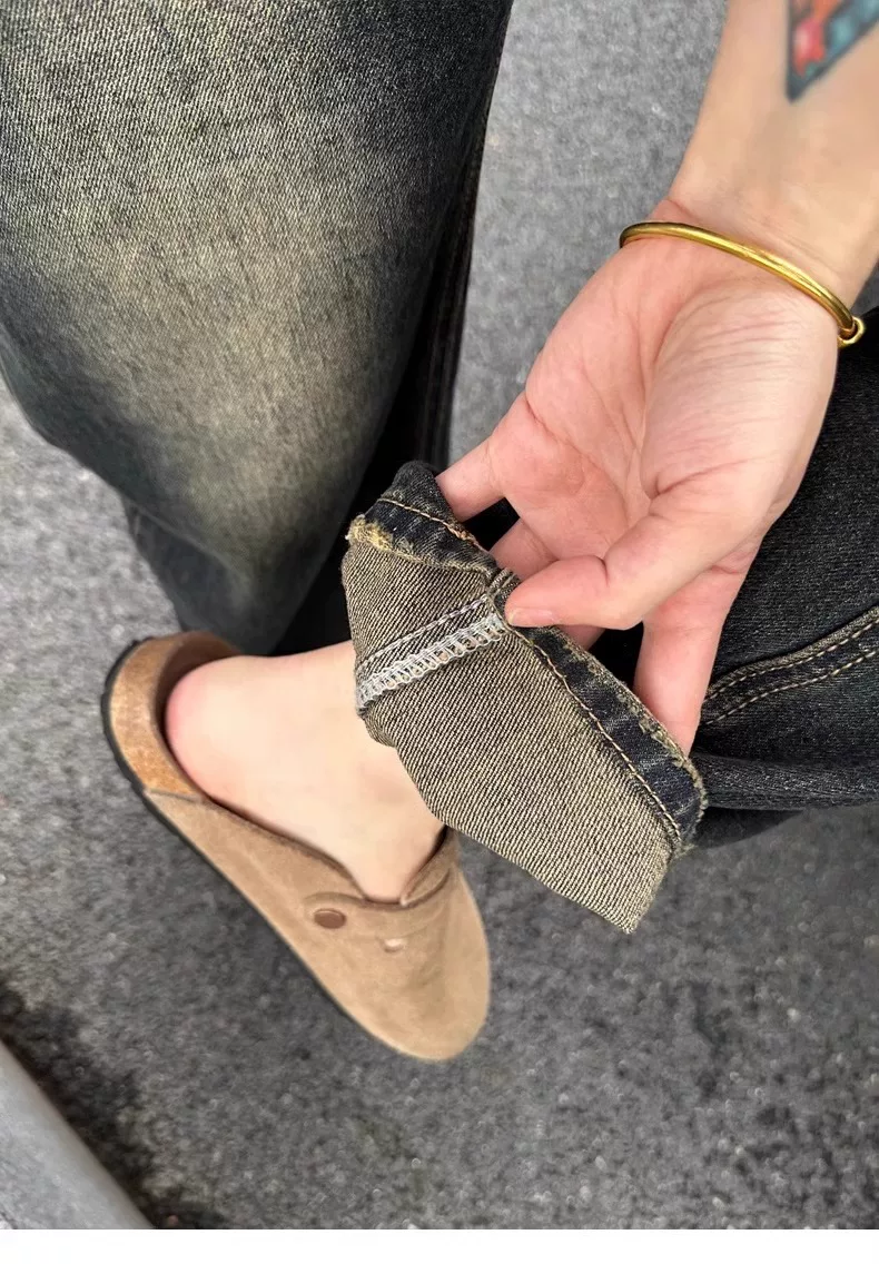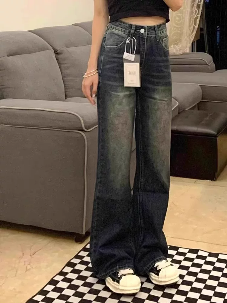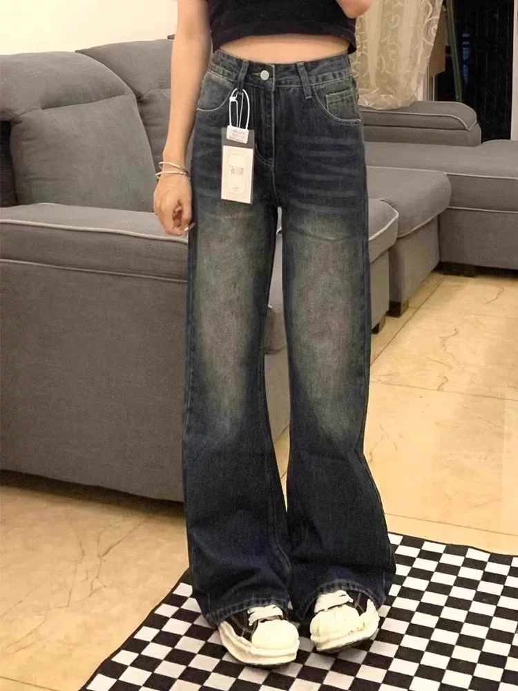 Quần jean ống đứng dáng quả lê hơi loe dành cho nữ, đầu thu, size lớn, lưng cao, rộng rãi, tôn dáng, không bó sát, quần ống rộng