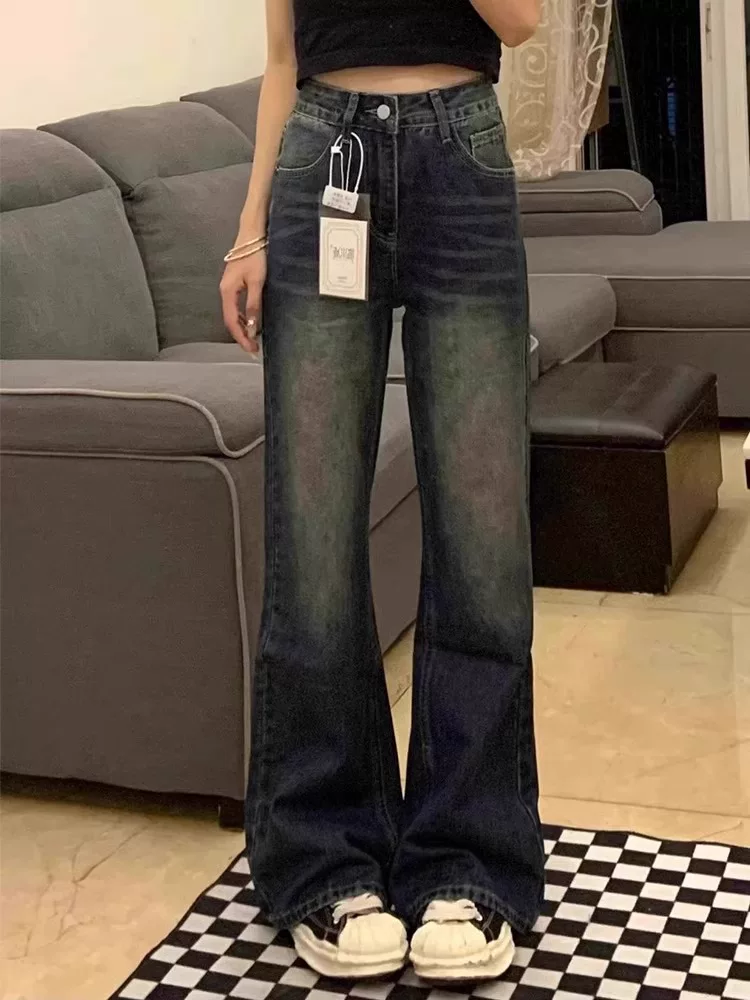 - Quần jean ống đứng dáng quả lê hơi loe dành cho nữ, đầu thu, size lớn, lưng cao, rộng rãi, tôn dáng, không bó sát, quần ống rộng