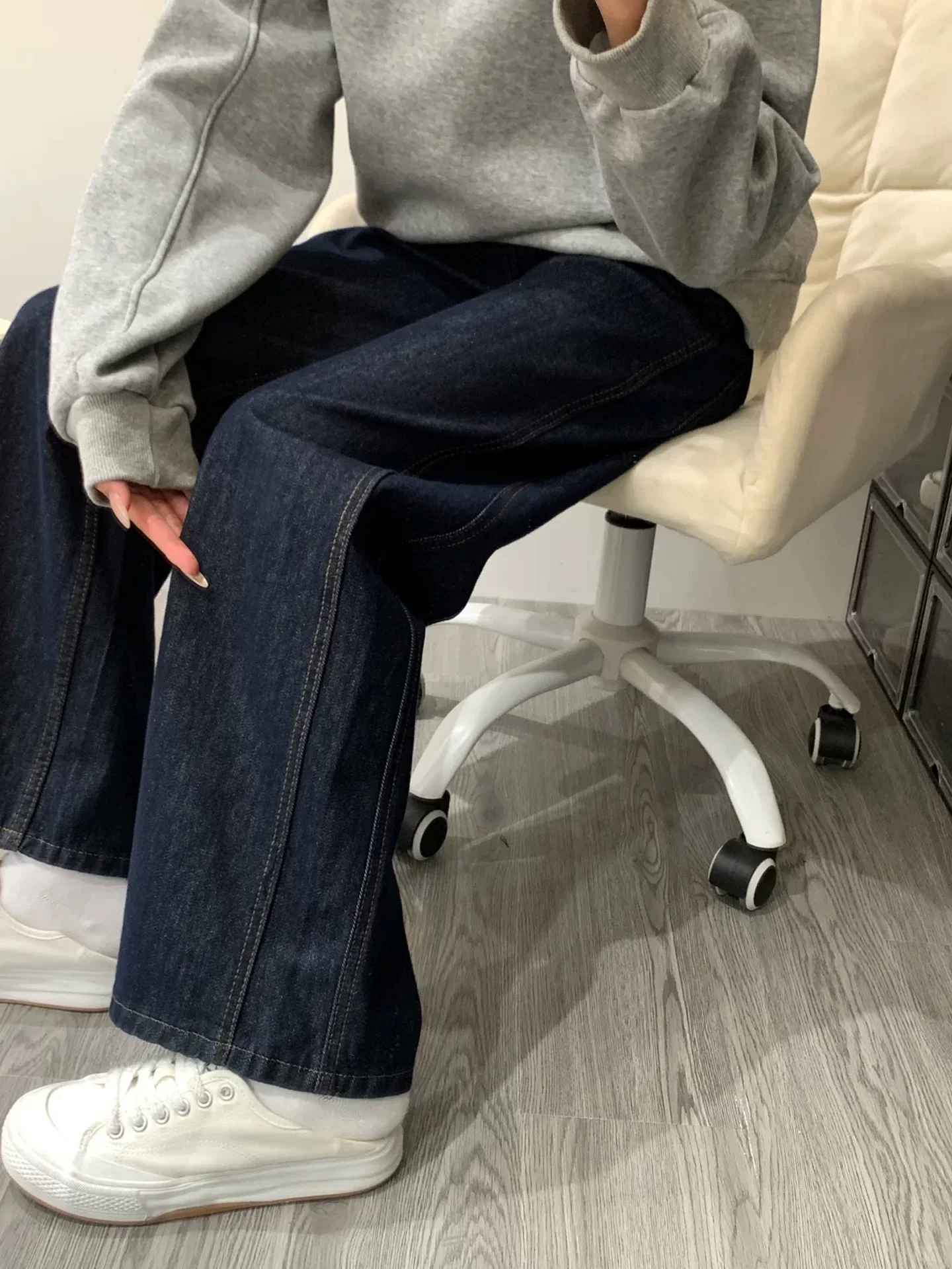- Quần jean ống đứng dày lót lông cừu dành cho nữ, cỡ lớn mùa đông, lưng cao, dáng rộng, thon gọn, dáng quả lê, quần ống rộng