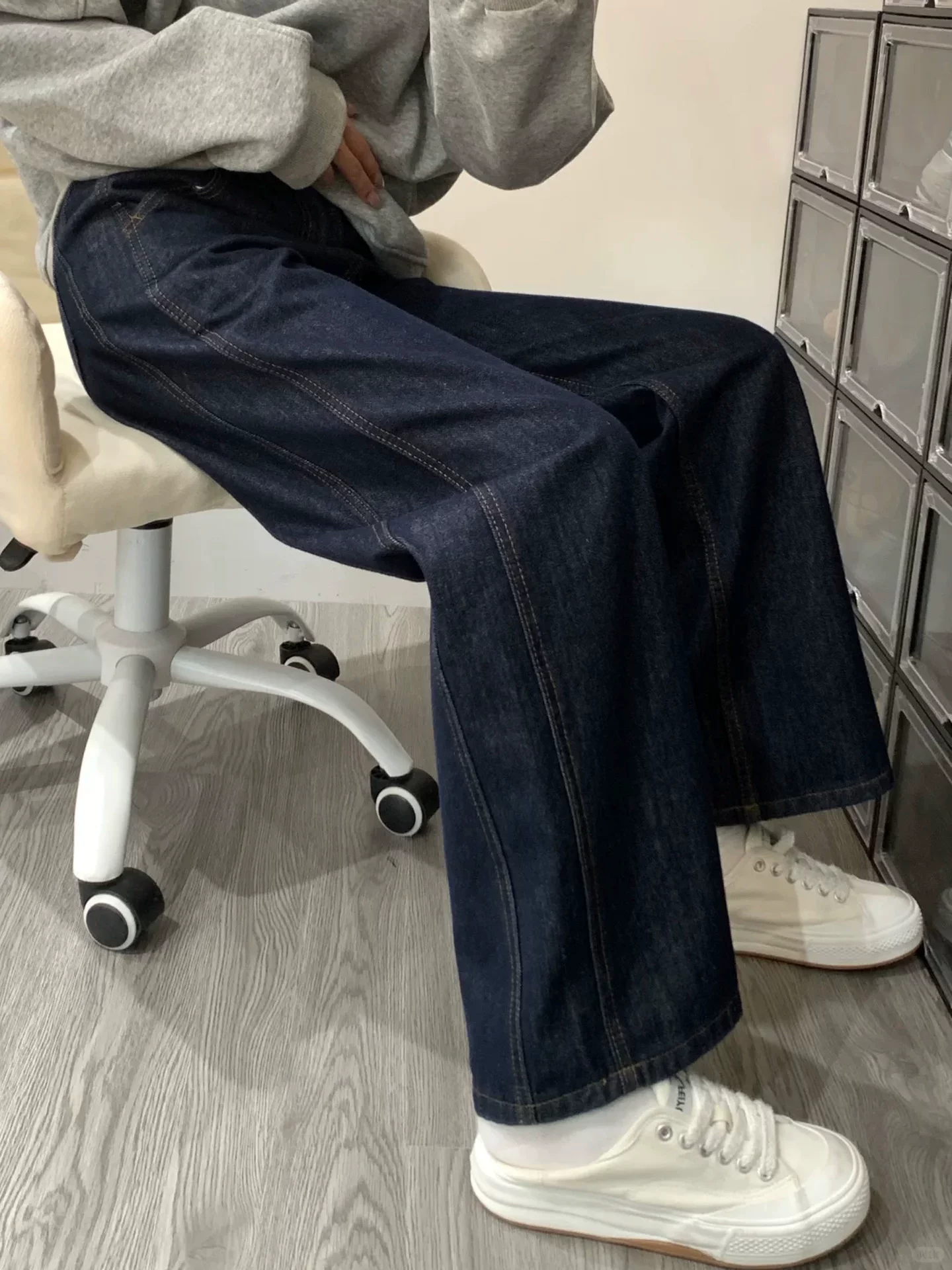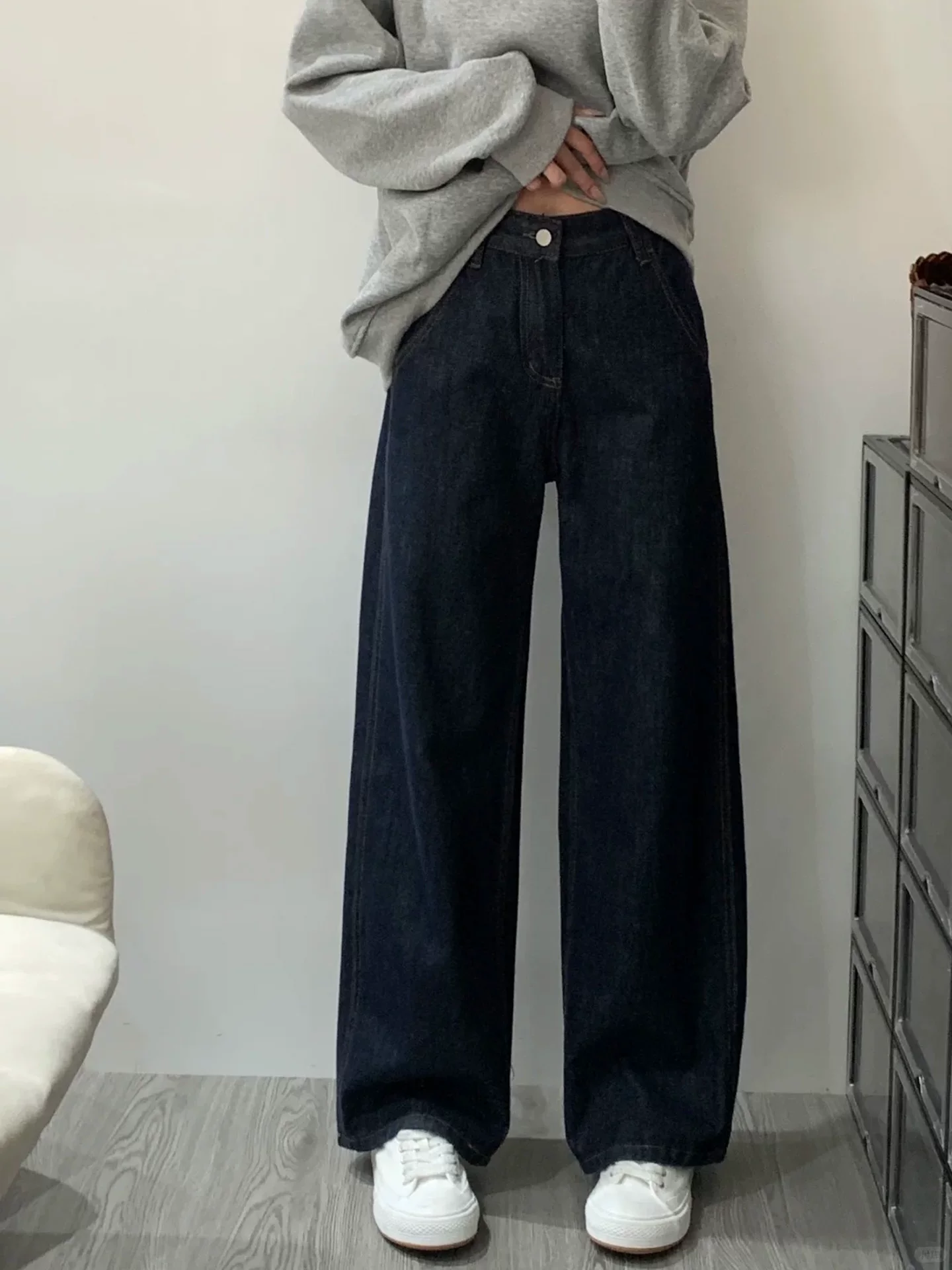 Quần jean ống đứng dày lót lông cừu dành cho nữ, cỡ lớn mùa đông, lưng cao, dáng rộng, thon gọn, dáng quả lê, quần ống rộng