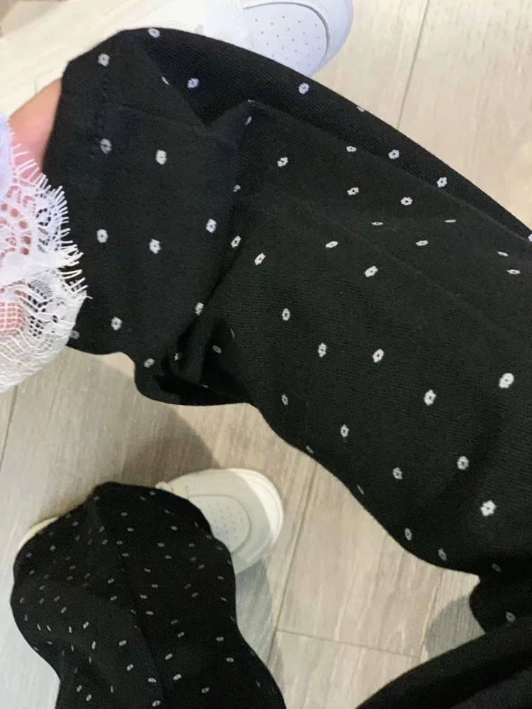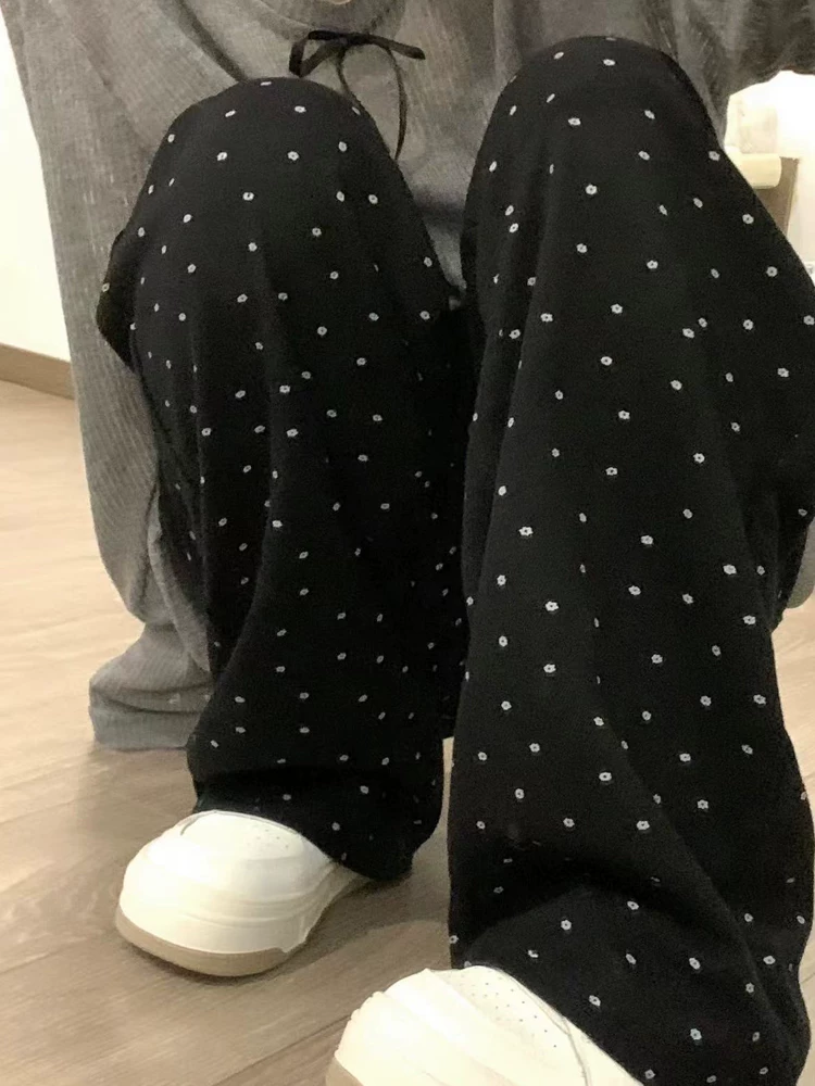 - Quần jean ống đứng họa tiết hoa chấm bi phong cách Hàn Quốc dành cho nữ, đầu thu, cỡ lớn, lưng cao, dáng rộng, dáng rộng, quần dài ống rộng