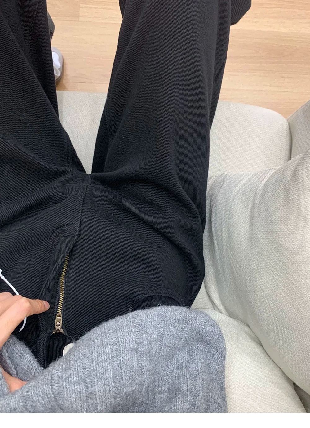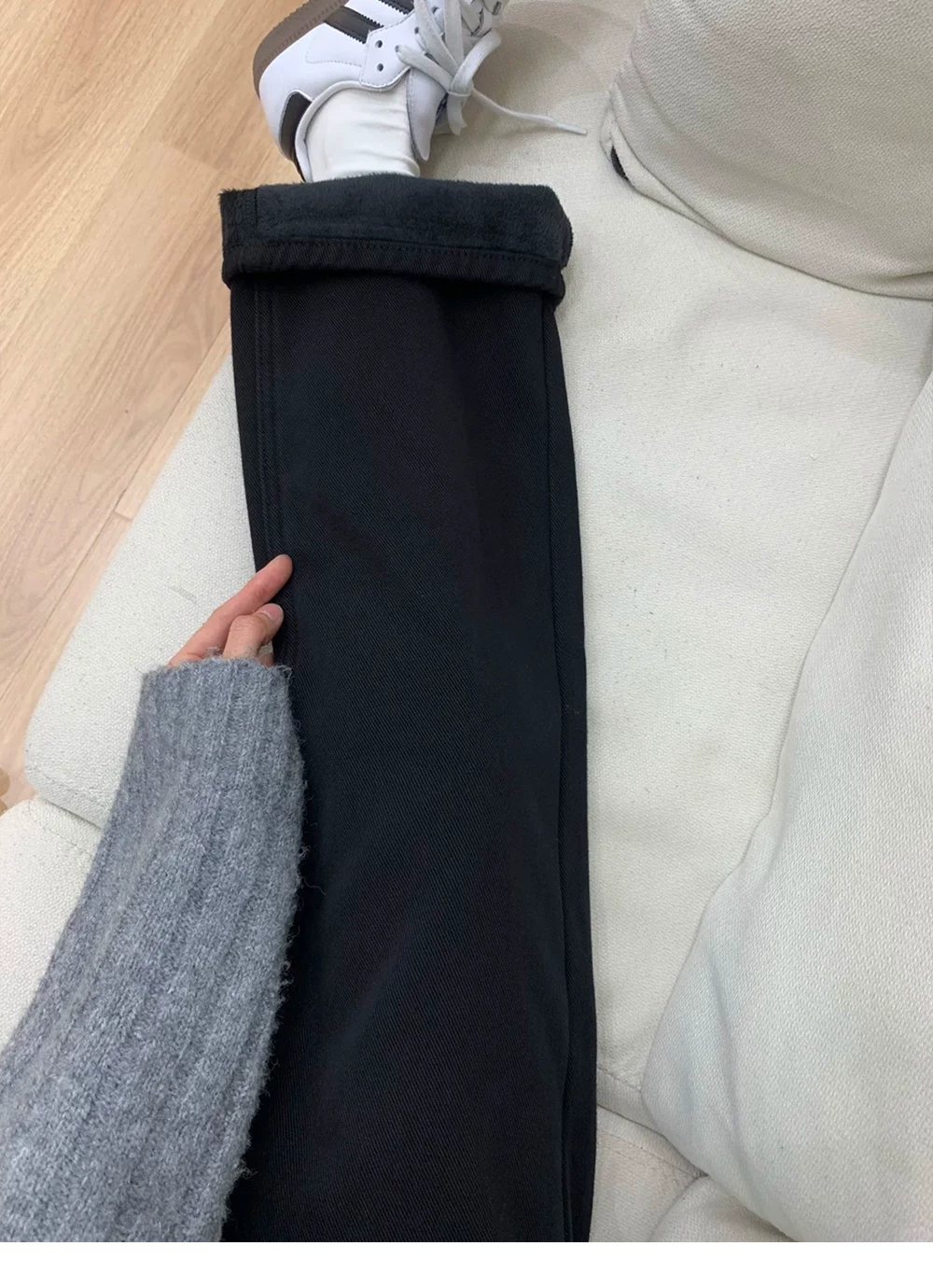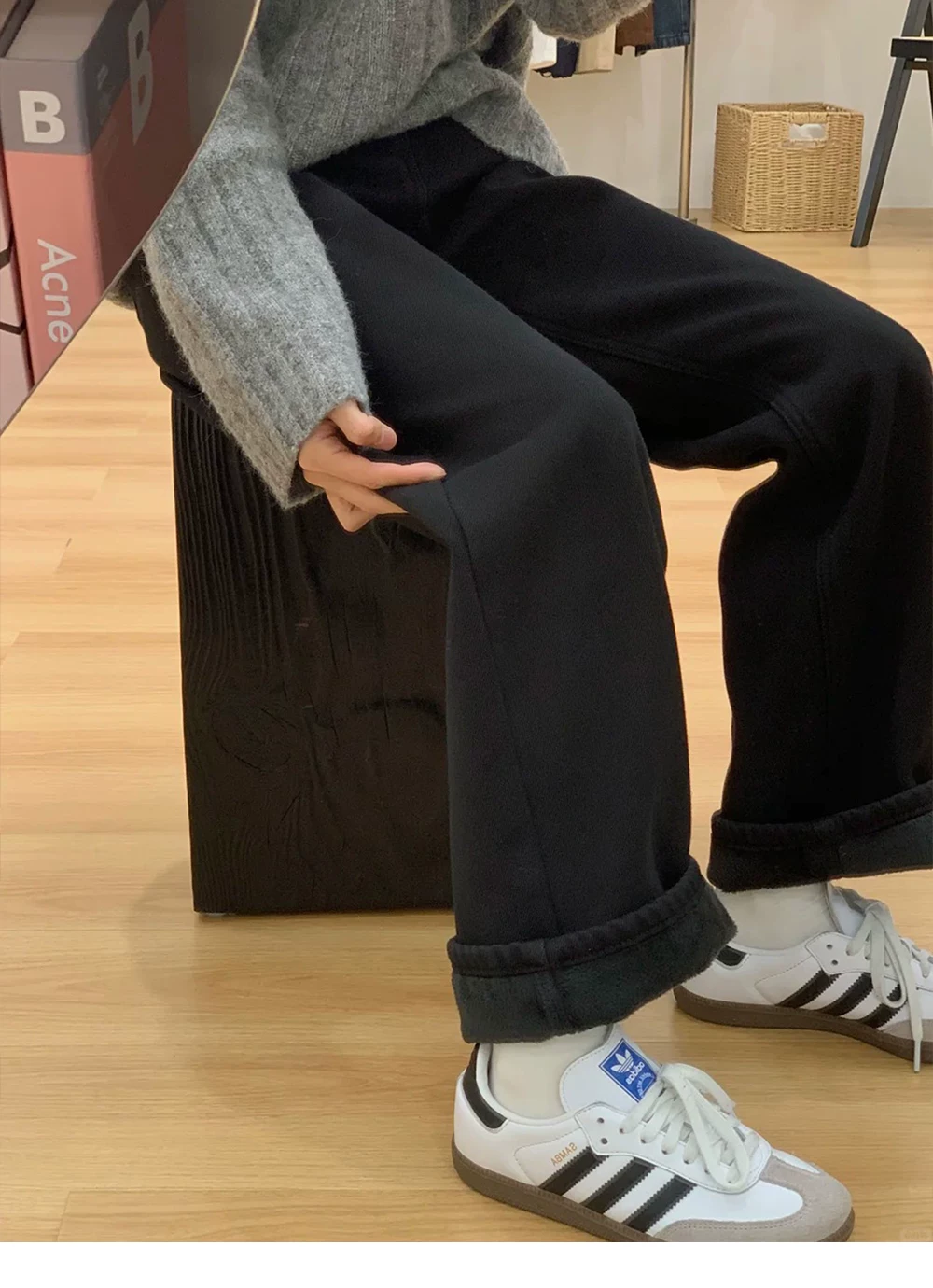 - Quần jean ống đứng lót lông màu đen dành cho nữ, mùa đông, cỡ lớn, lưng cao, co giãn, giảm béo, dáng quả lê, quần ống rộng hẹp