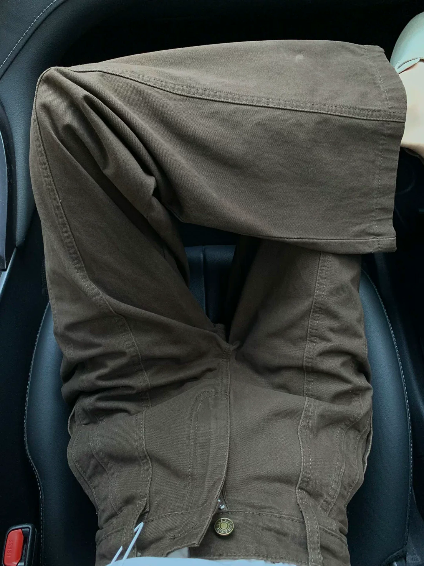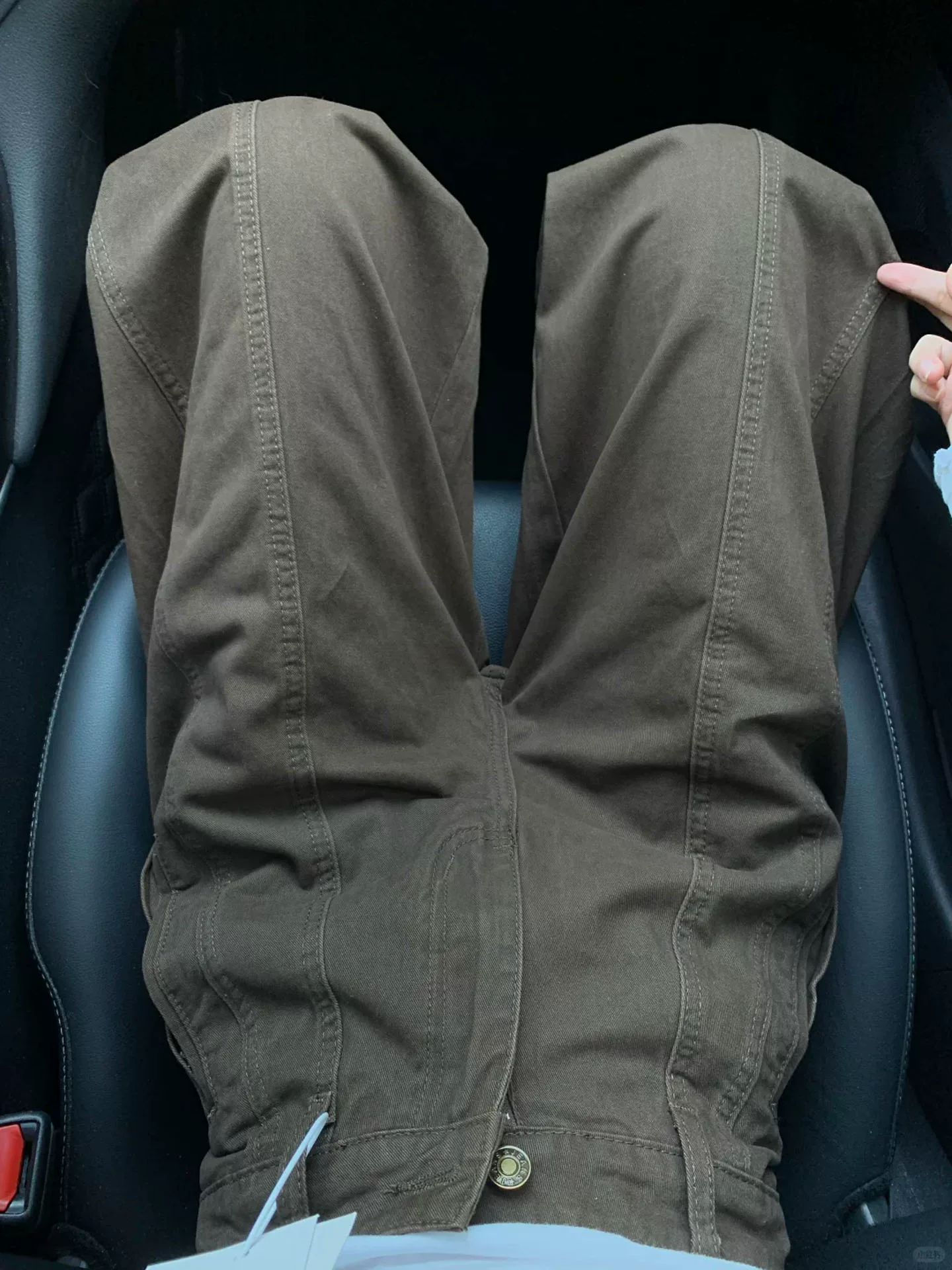 - Quần jean ống đứng màu cà phê cổ điển dành cho nữ, mùa thu, cỡ lớn, lưng cao, dáng suôn, thon gọn, dáng quả lê, quần ống rộng