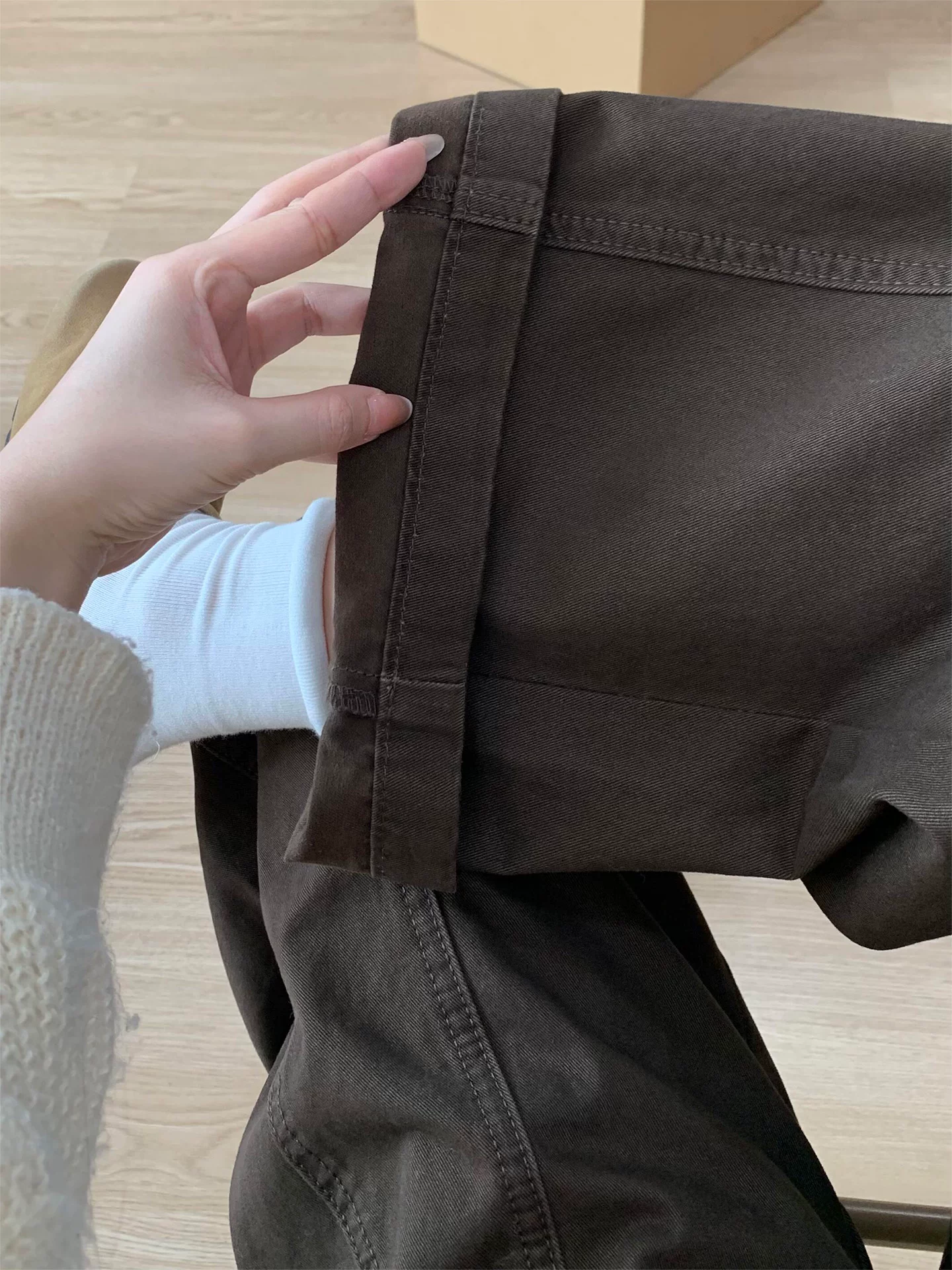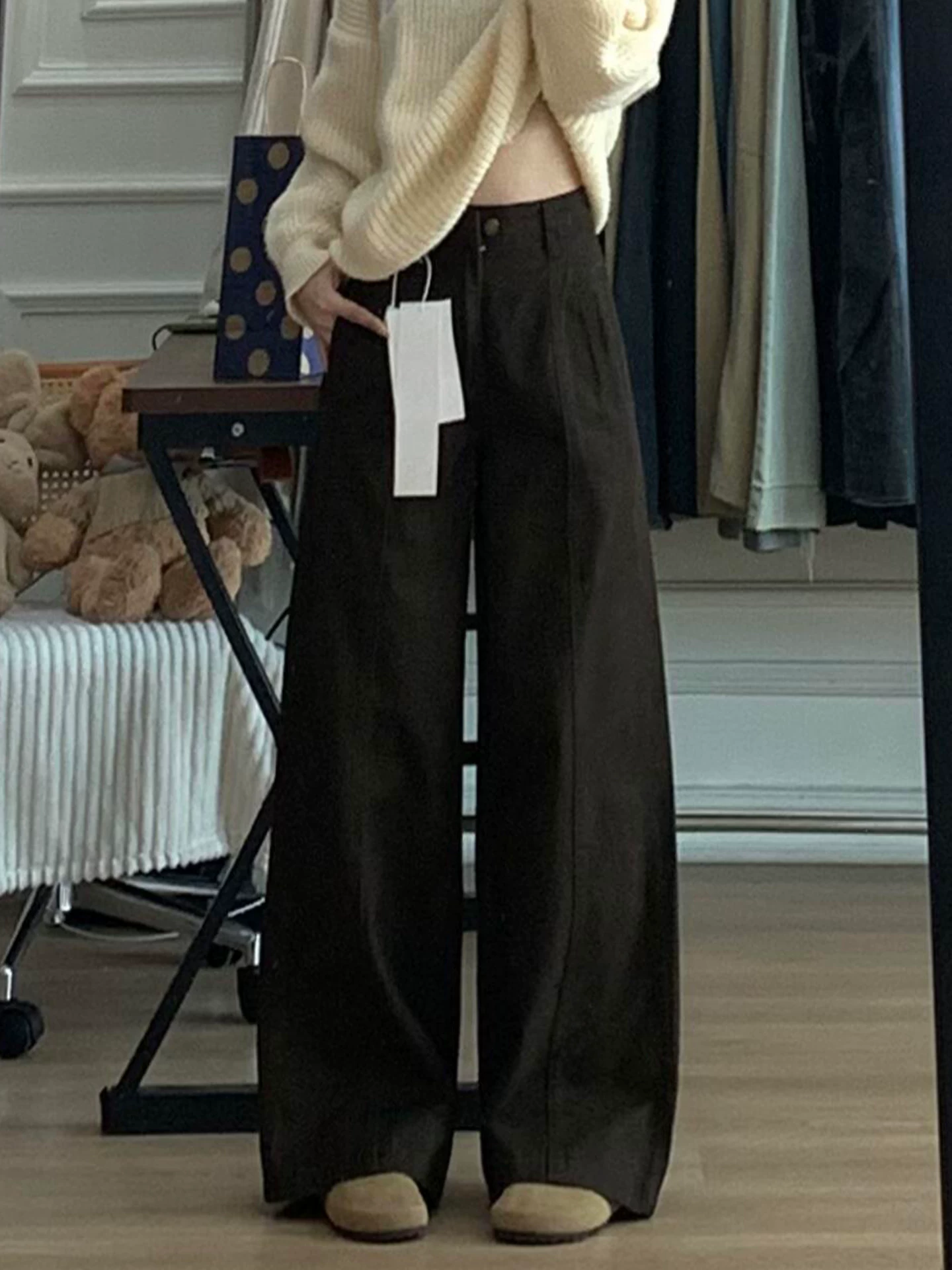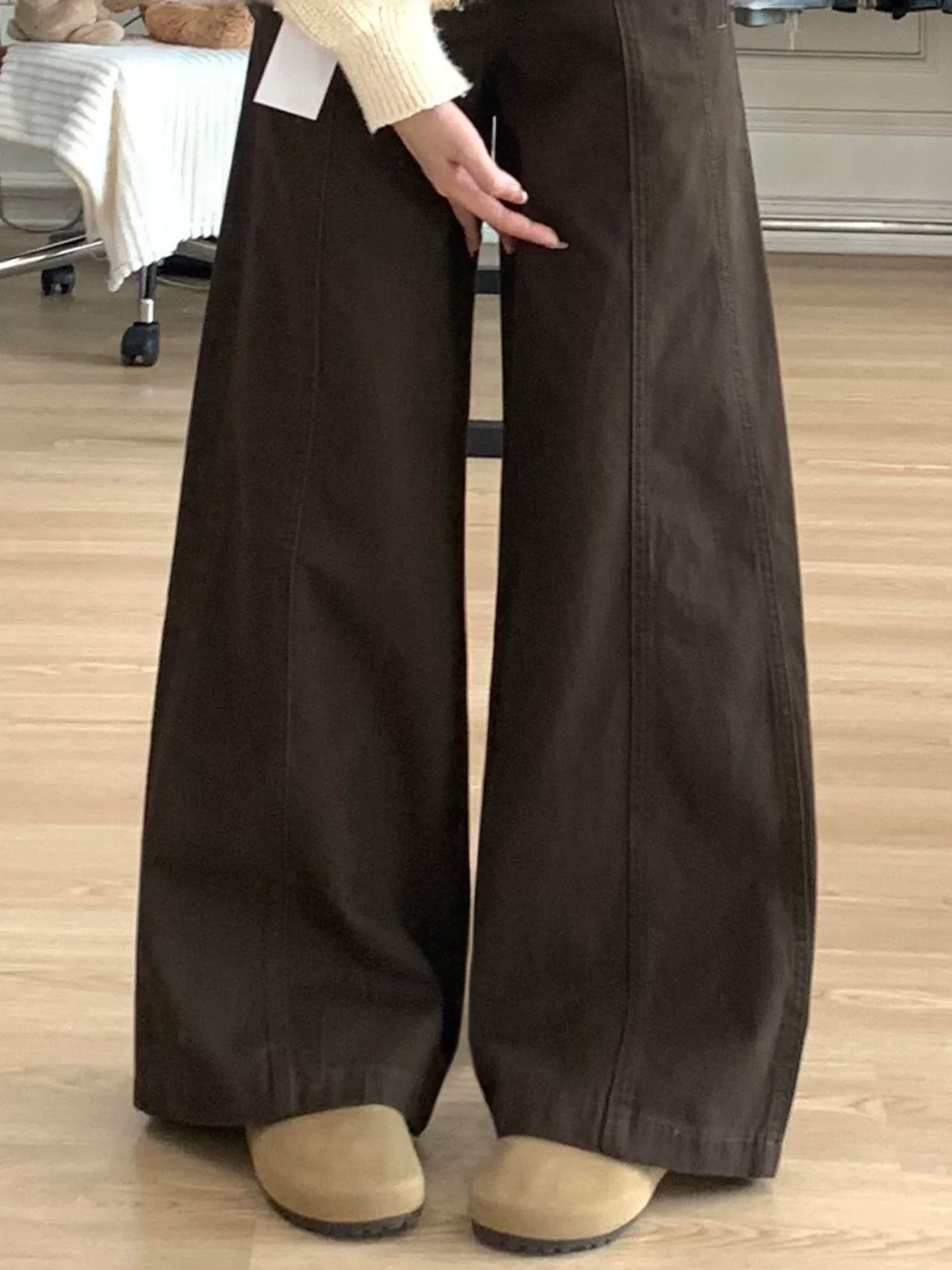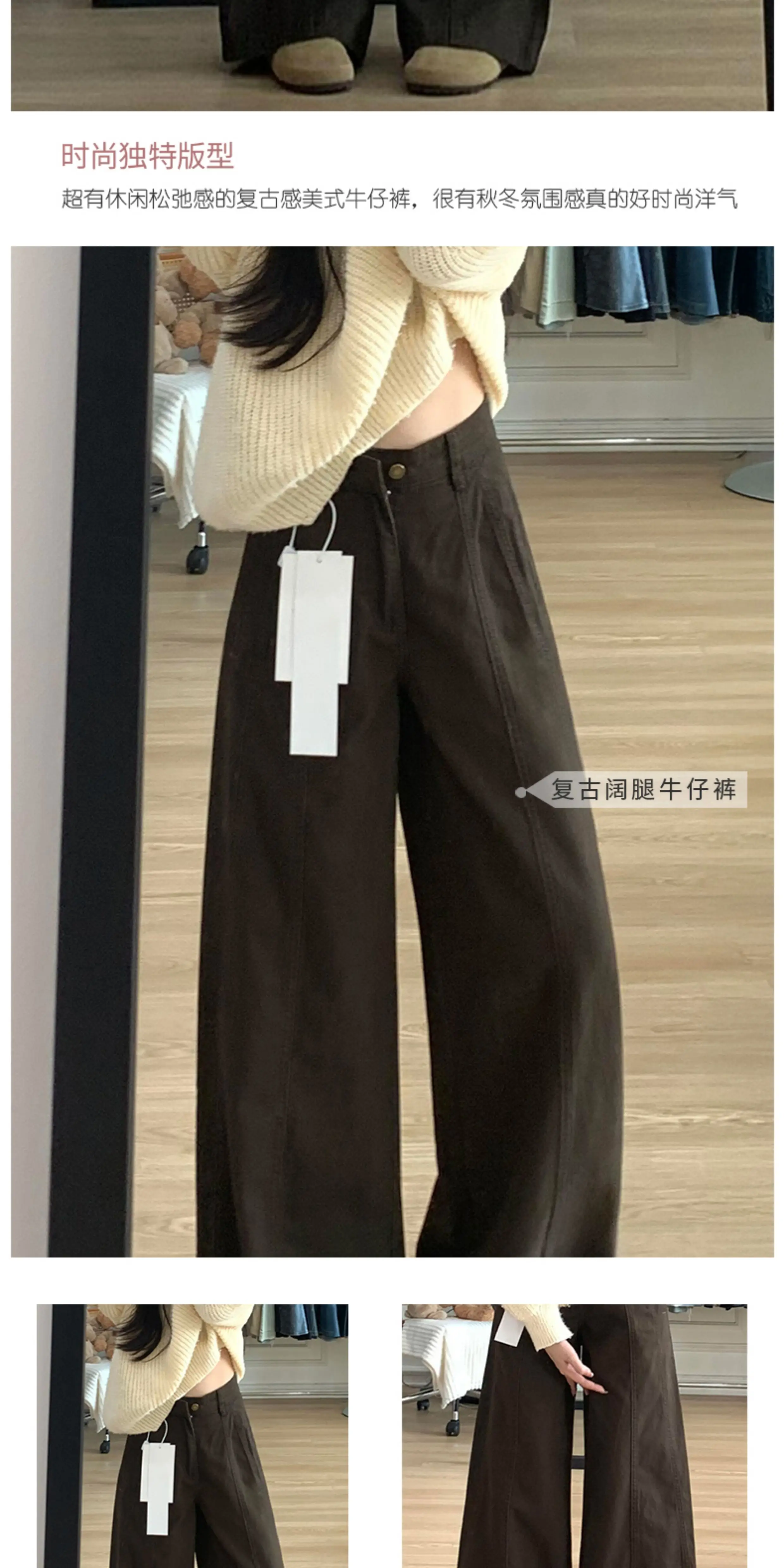 - Quần jean ống đứng màu cà phê Melard dành cho nữ, mùa thu đông, cỡ lớn, lưng cao, dáng rộng, giảm béo, dáng quả lê, quần ống rộng