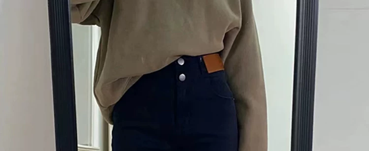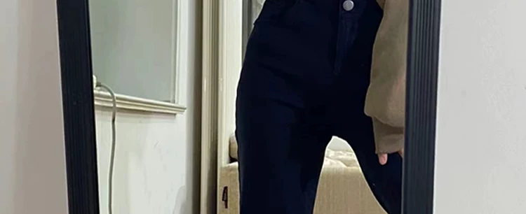- Quần jean ống đứng màu đen dành cho nữ có thân hình quả lê, lót lông cừu mùa thu đông, cỡ lớn, cạp cao, quần thuốc lá thon gọn