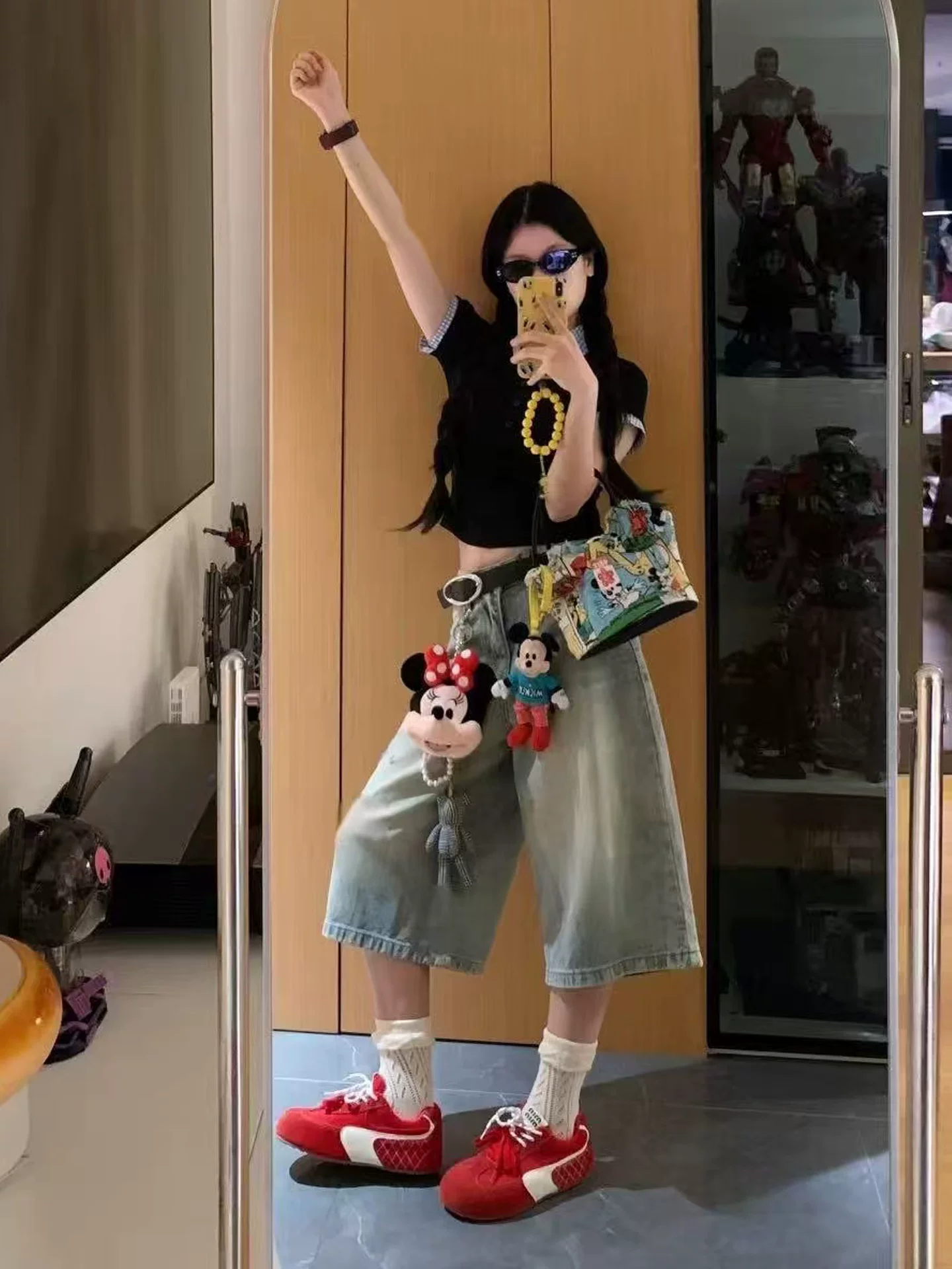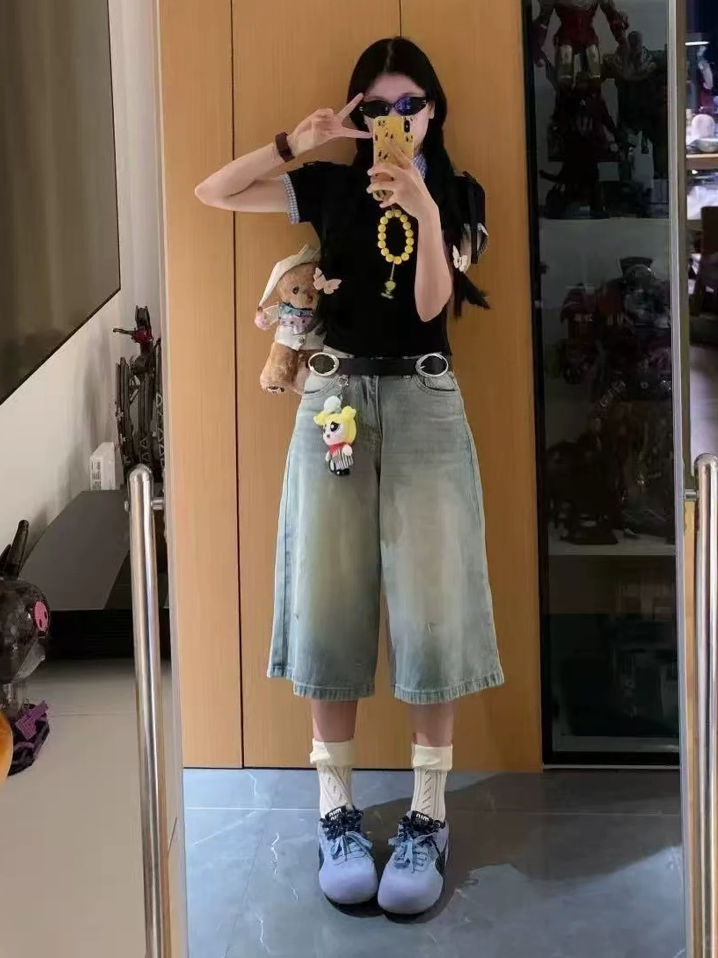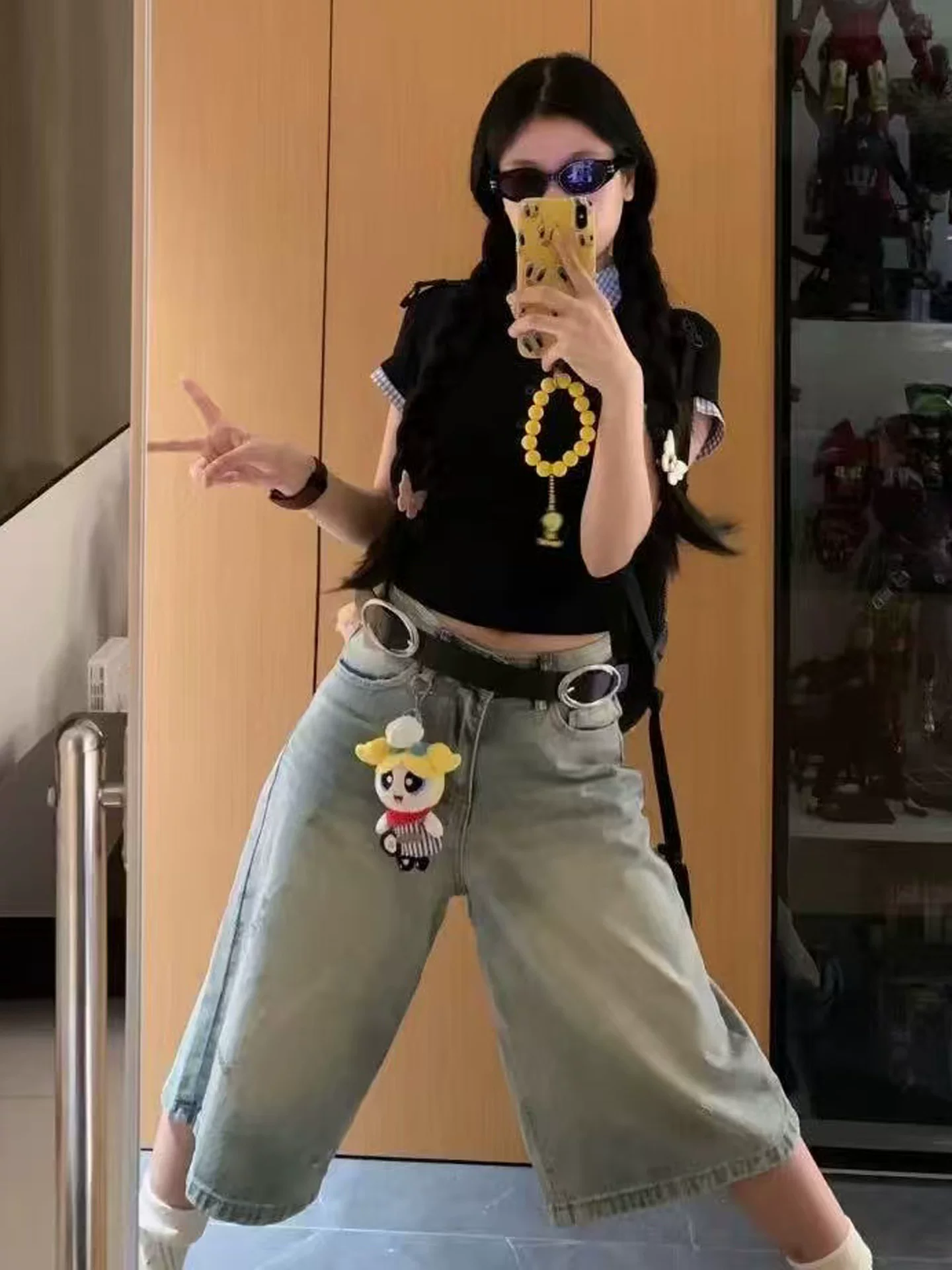 - Quần jean ống đứng màu sáng cổ điển dành cho nữ, phong cách mùa hè mới, cỡ lớn, lưng cao, dáng rộng, dáng rộng, quần ống rộng.