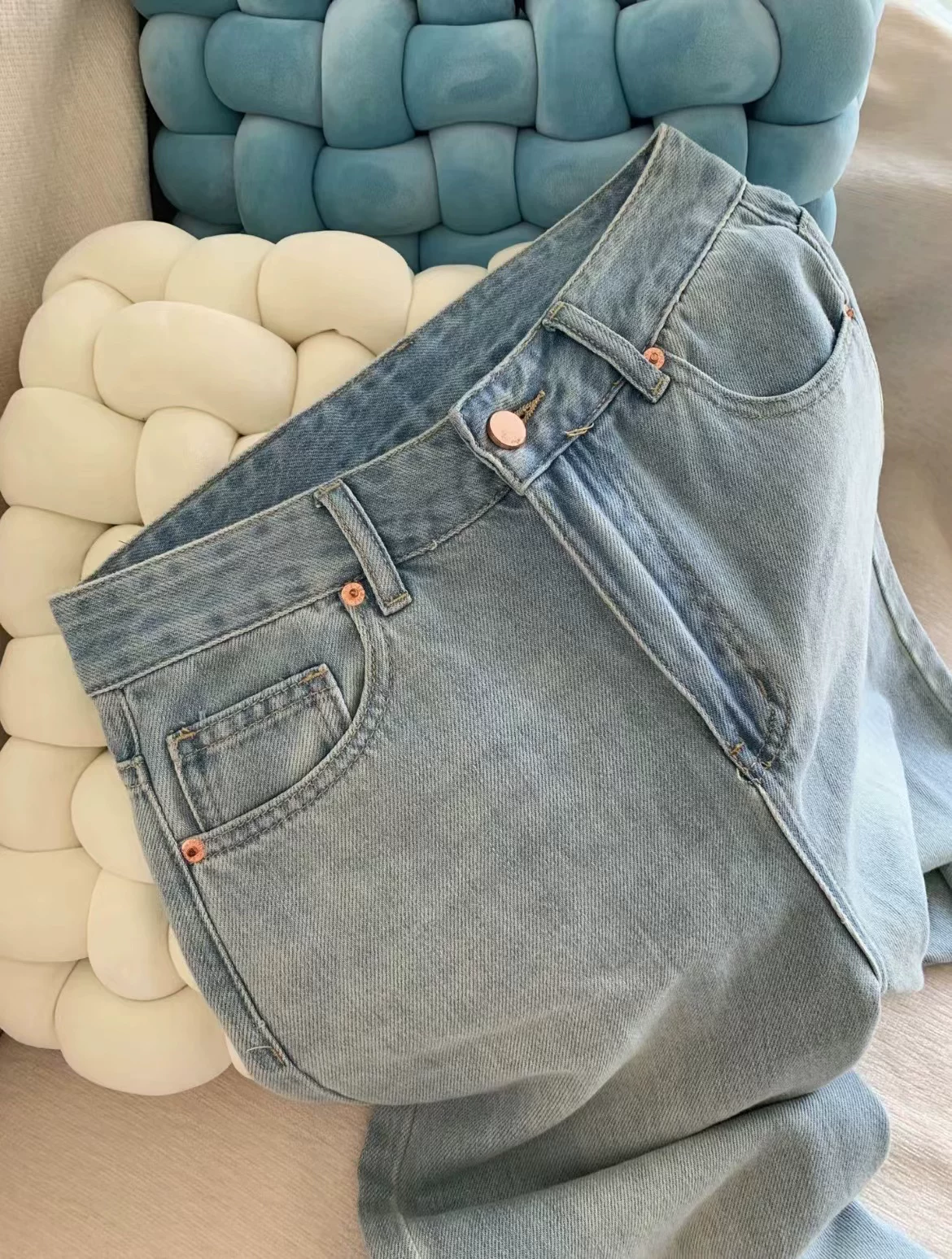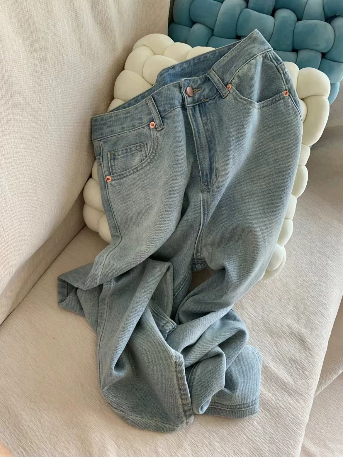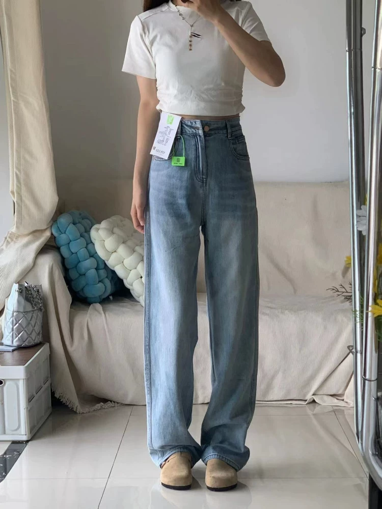 - Quần jean ống đứng màu xanh nhạt dành cho nữ, size lớn mùa hè, cạp cao, dáng rộng, tôn dáng, chất liệu Tencel mềm mại, quần dài ống rộng