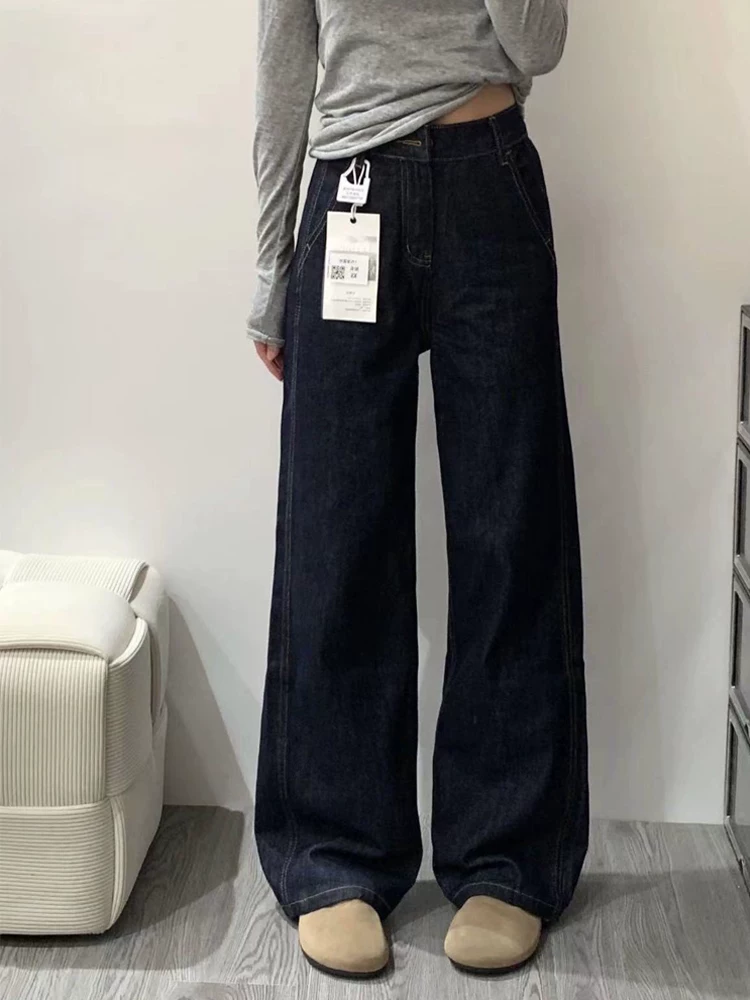 Quần jean ống đứng nữ, kiểu mới thu đông 2025, size lớn, cạp cao, dáng rộng, dành cho người có dáng quả lê, quần ống rộng