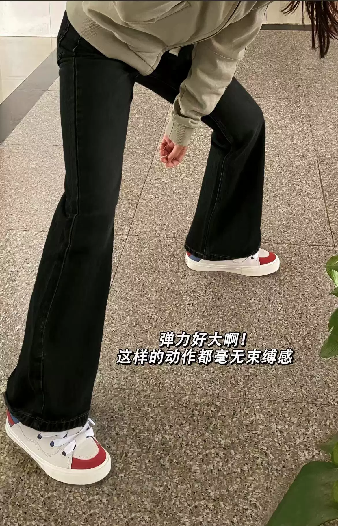Quần jean ống đứng ống loe dày lót lông cừu dành cho nữ, mùa thu đông, cỡ lớn, lưng cao, co giãn, che hông, quần ống loe thon gọn.