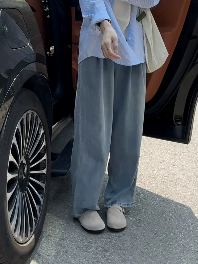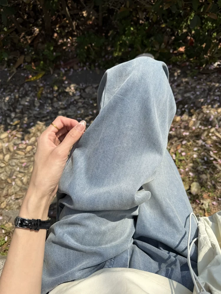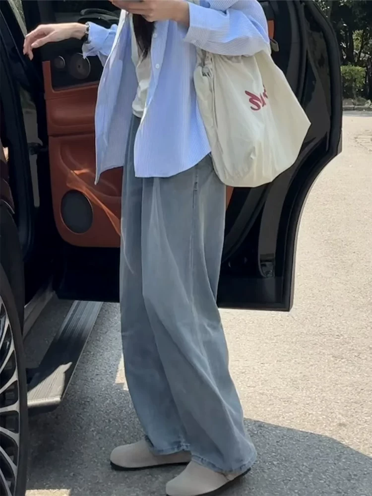 Quần jean ống đứng Tencel dành cho nữ, cỡ lớn mùa hè, lưng cao, dáng rộng, thon gọn, dáng quả lê, quần ống rộng bằng vải lụa băng