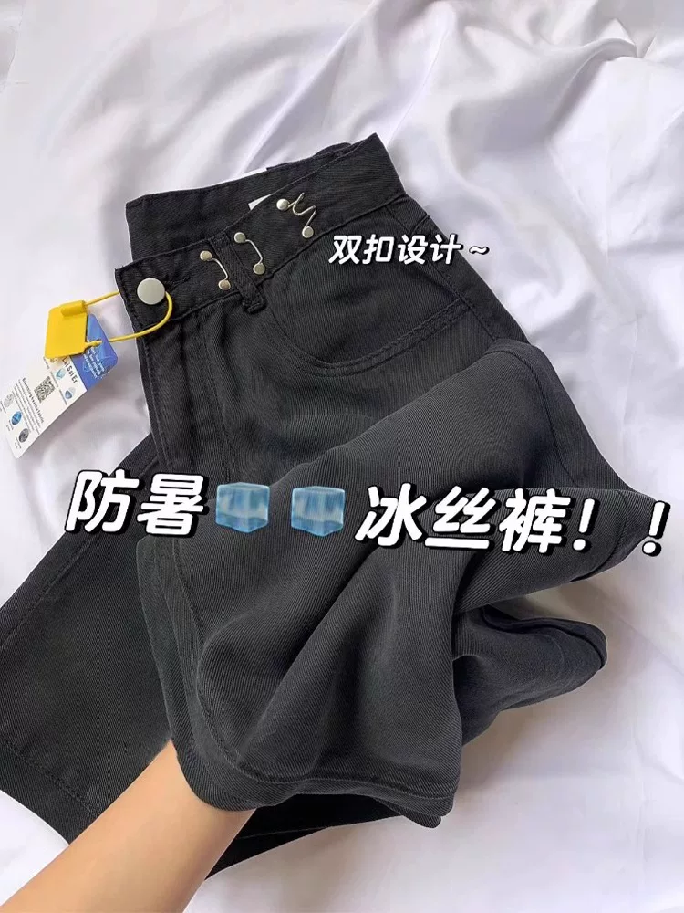 Quần jean ống đứng Tencel dành cho nữ, kiểu dáng mỏng mùa hè, cỡ lớn, lưng cao, dáng rộng, giảm béo, dáng quả lê, quần ống rộng bằng vải lụa băng