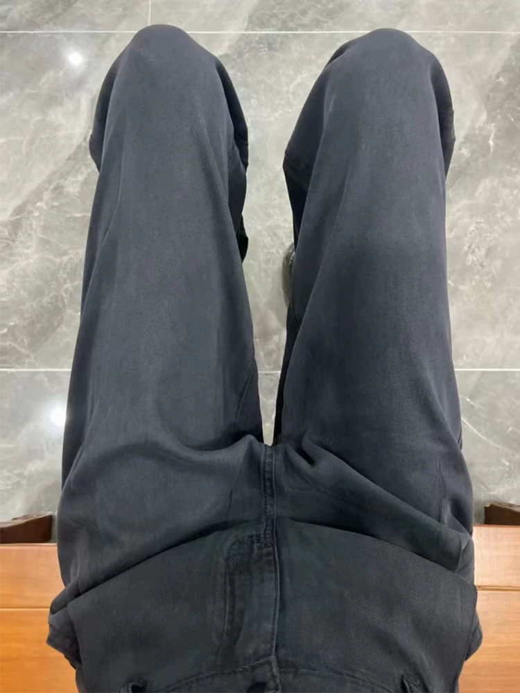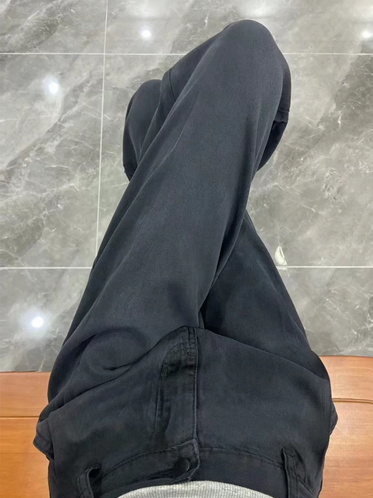 - Quần jean ống đứng Tencel màu đen dành cho nữ, mùa xuân, cỡ lớn, lưng cao, dáng rộng, che hông, giảm béo, quần ống rộng bằng vải lụa băng
