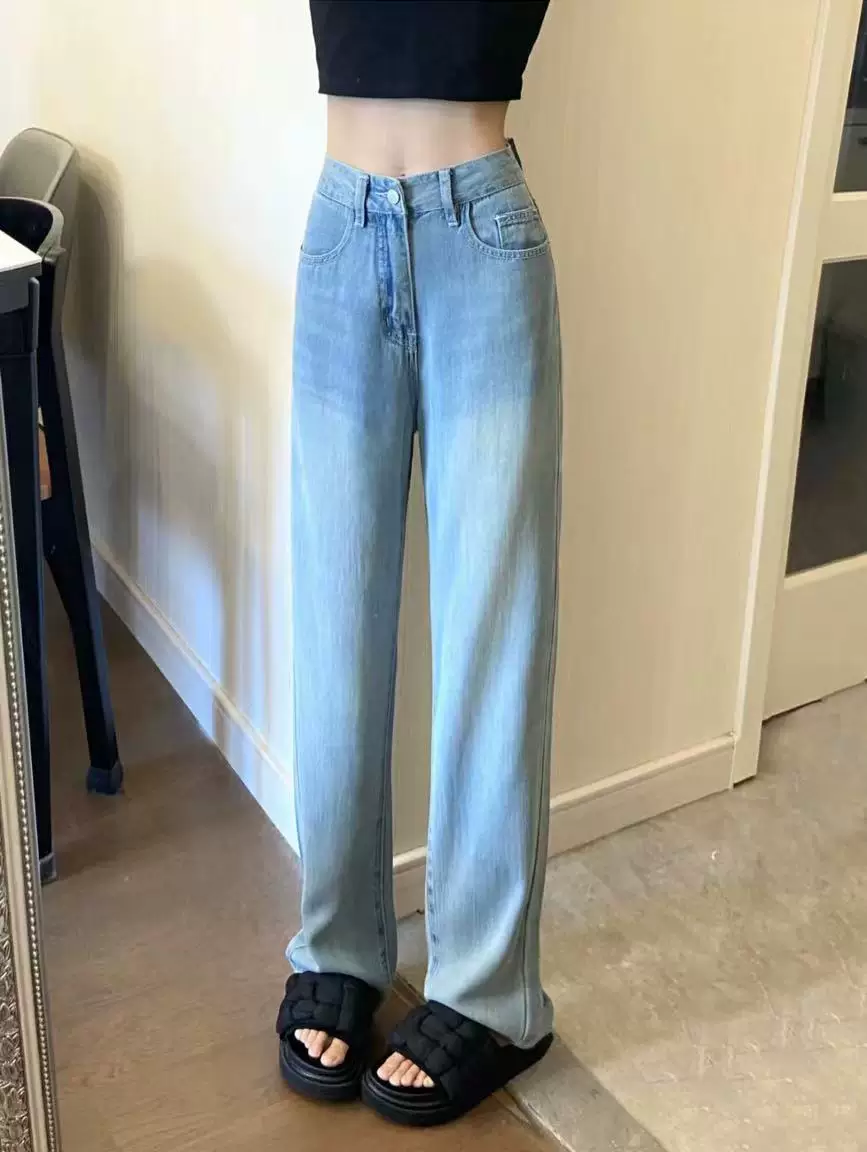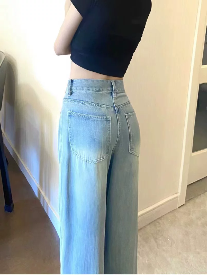 Quần jean ống đứng Tencel màu trắng dành cho nữ, cỡ lớn mùa hè, lưng cao, dáng rộng, tôn dáng, mềm mại, quần ống rộng hẹp