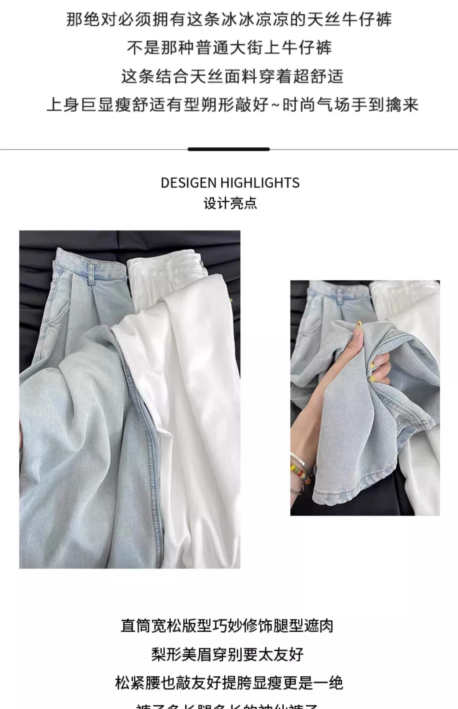 Quần jean ống đứng Tencel màu xanh nhạt dành cho nữ, cỡ lớn mùa hè, lưng cao, dáng rộng, mềm mại, tôn dáng, quần ống rộng chất liệu lụa đá