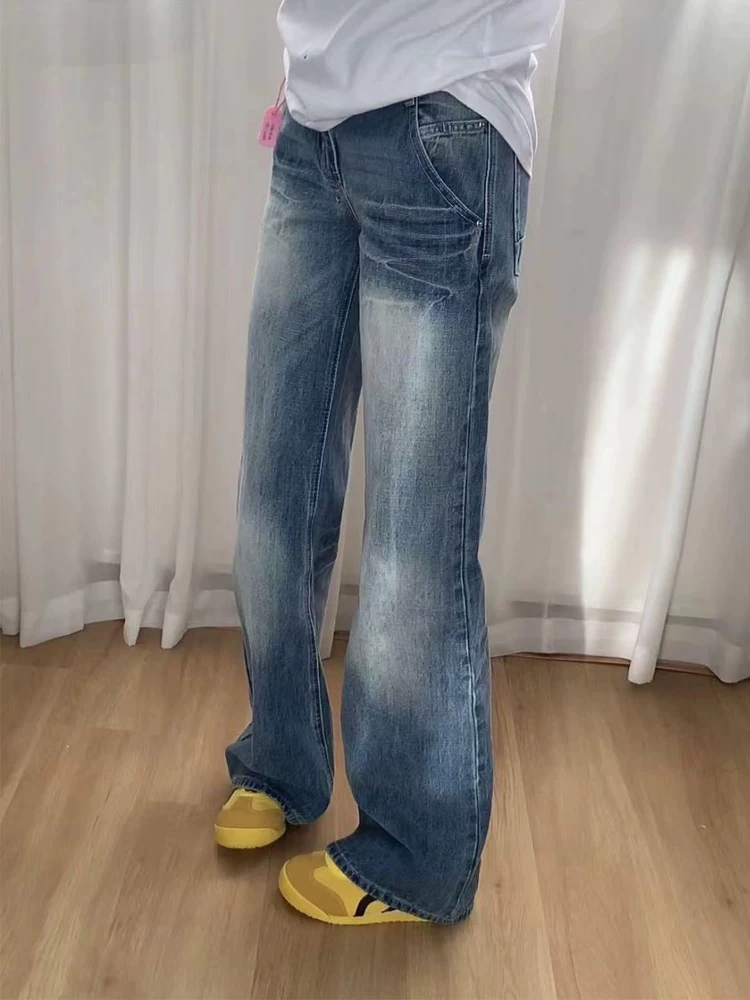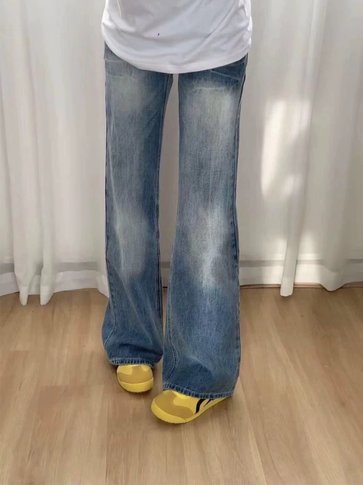 - Quần jean ống đứng xanh cổ điển dành cho nữ, kiểu dáng mùa thu mới, cỡ lớn, lưng cao, che hông, giảm béo, quần ống rộng hẹp.