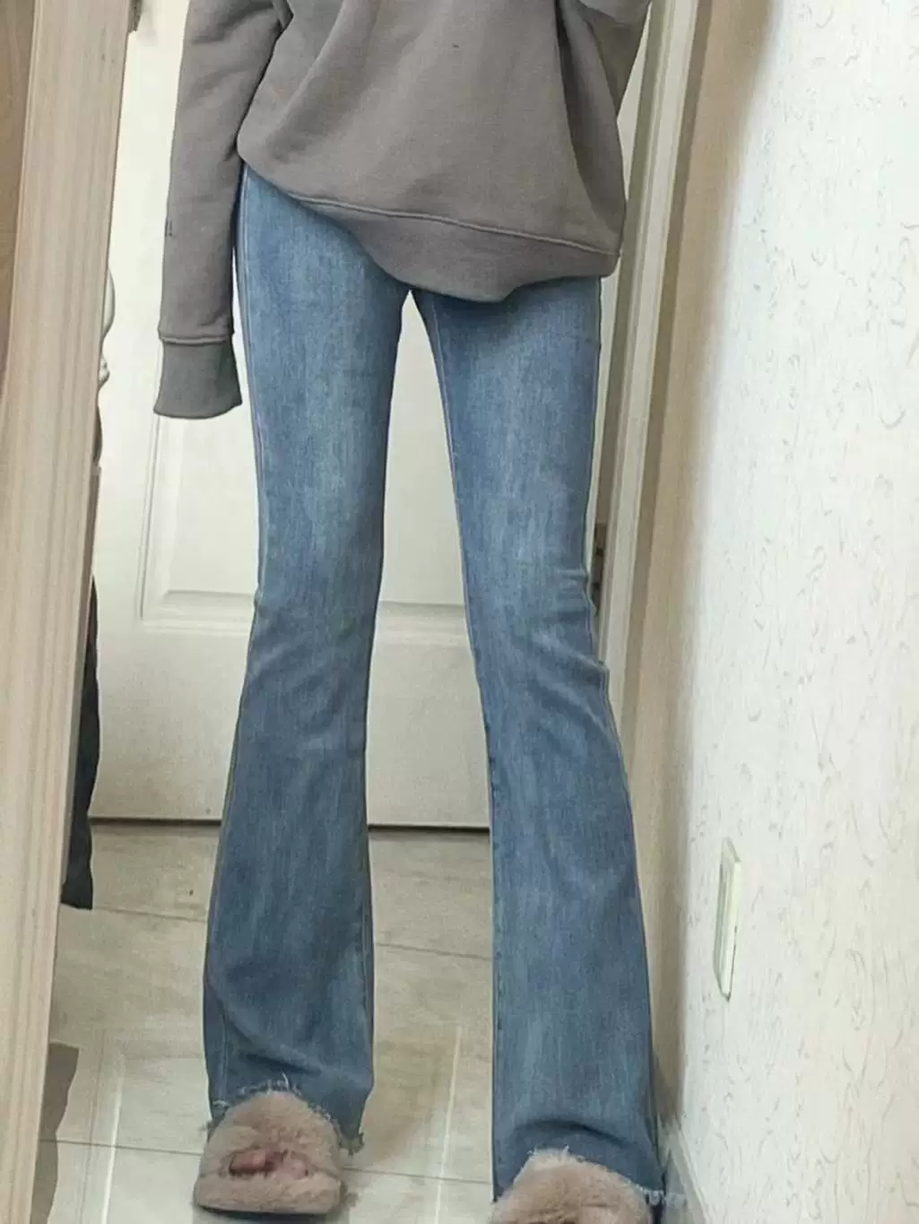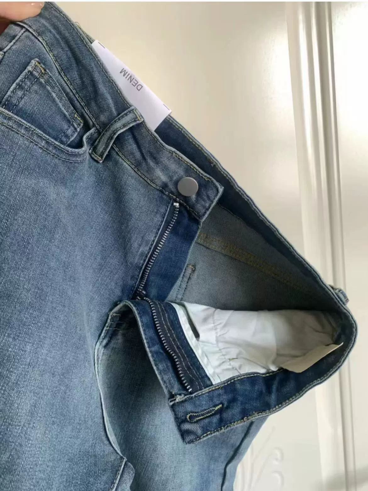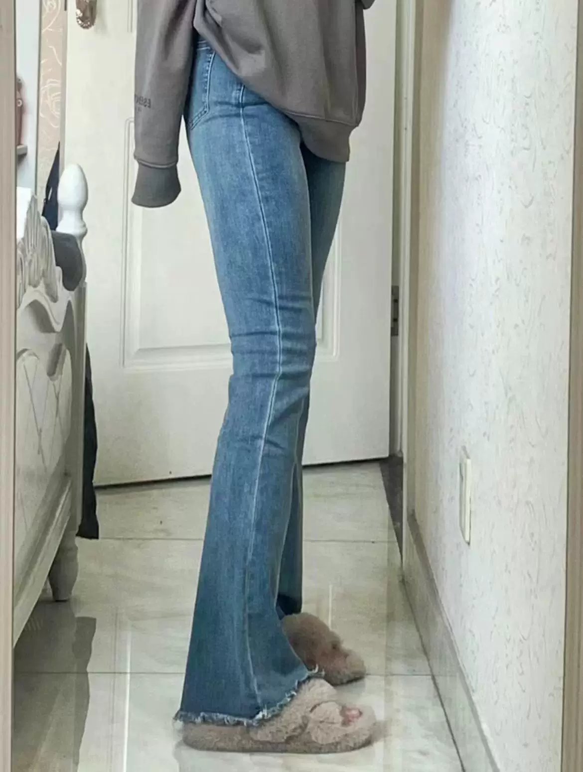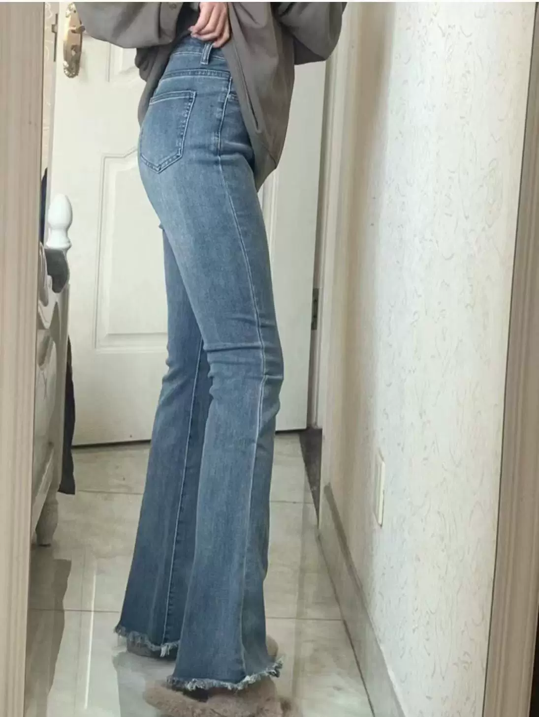 - Quần jean ống đứng xẻ tà màu xanh lam đầu xuân dành cho nữ cỡ lớn, che hông, co giãn, giảm béo, quần ống loe cạp cao