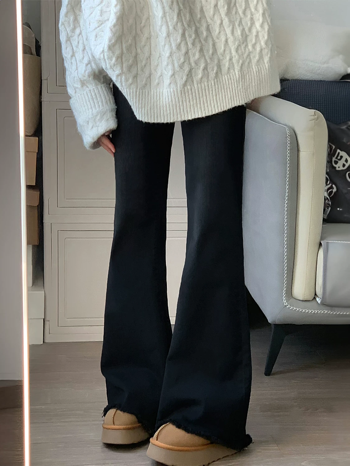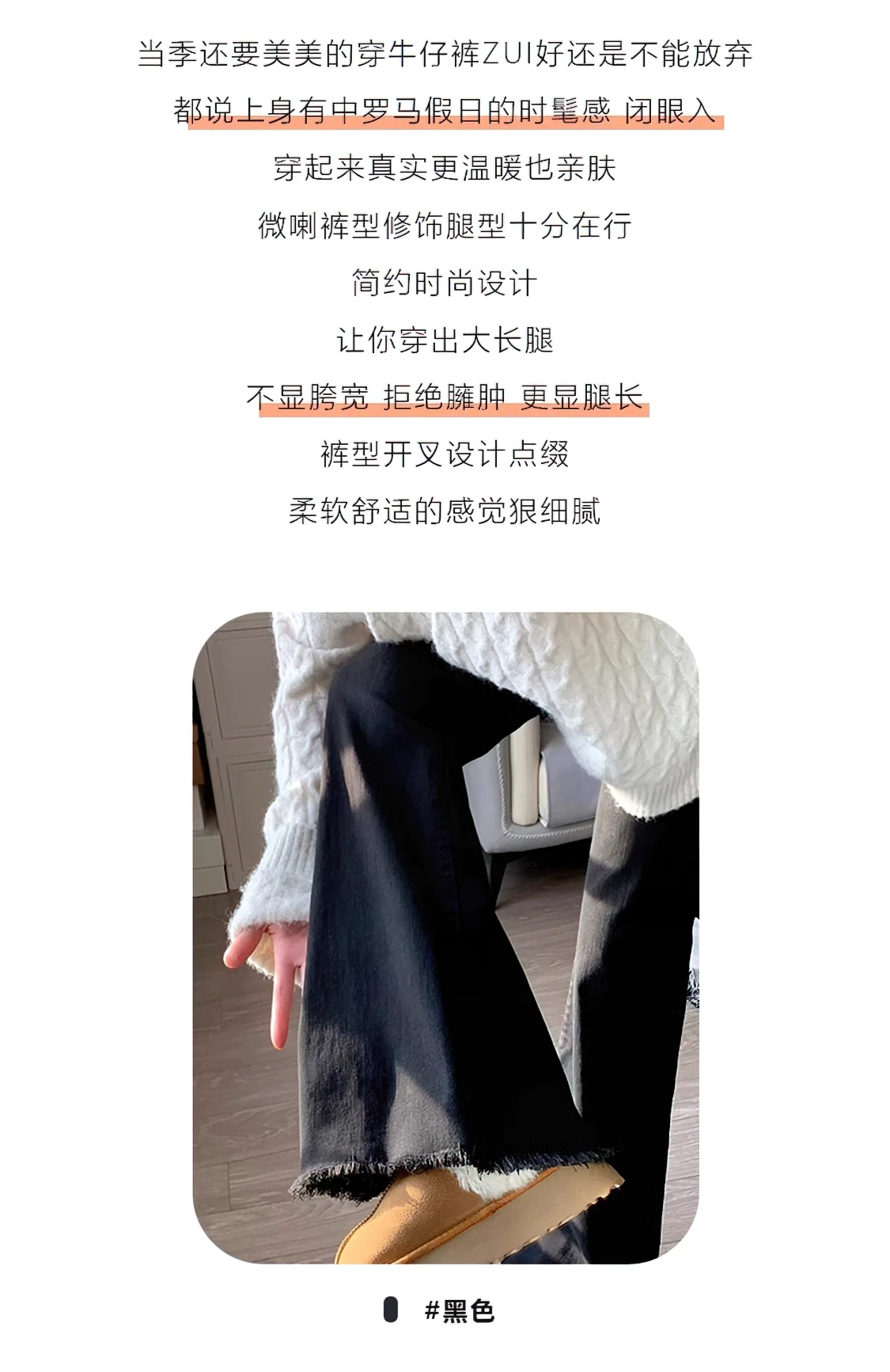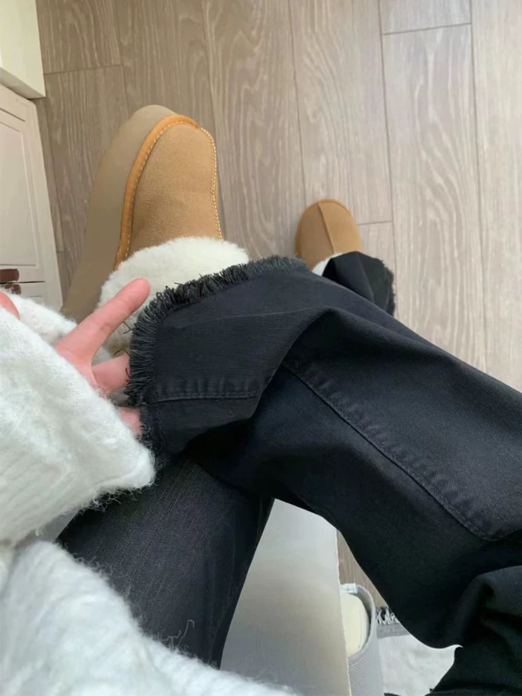 - Quần jean ống đứng xòe có lớp lót lông cừu và tua rua dành cho nữ, cỡ lớn mùa đông, quần ống loe co giãn cạp cao tôn dáng mùa xuân