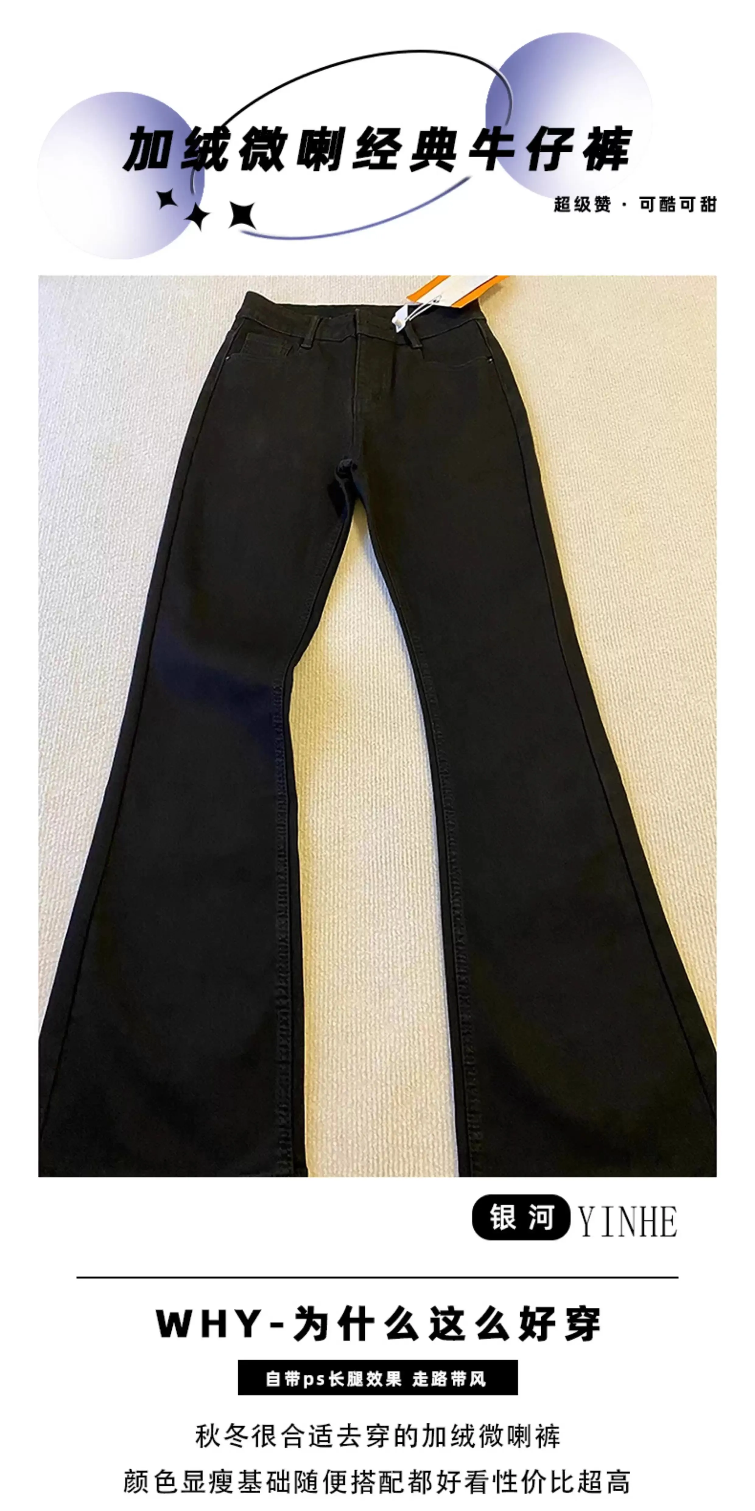 Quần jean ống đứng xòe màu đen lót lông cừu, quần bootcut cạp cao co giãn che hông, dáng ôm, size lớn mùa đông