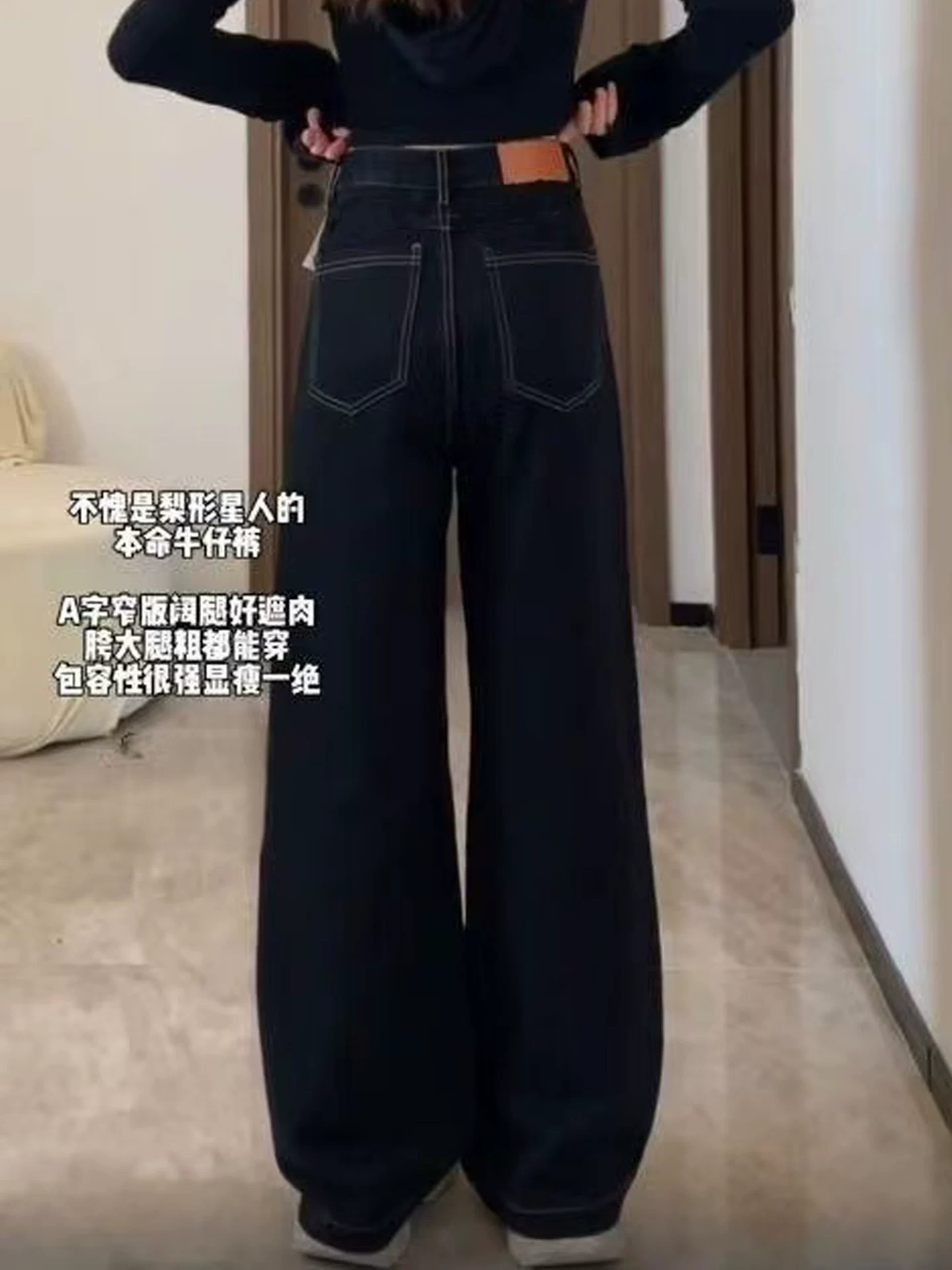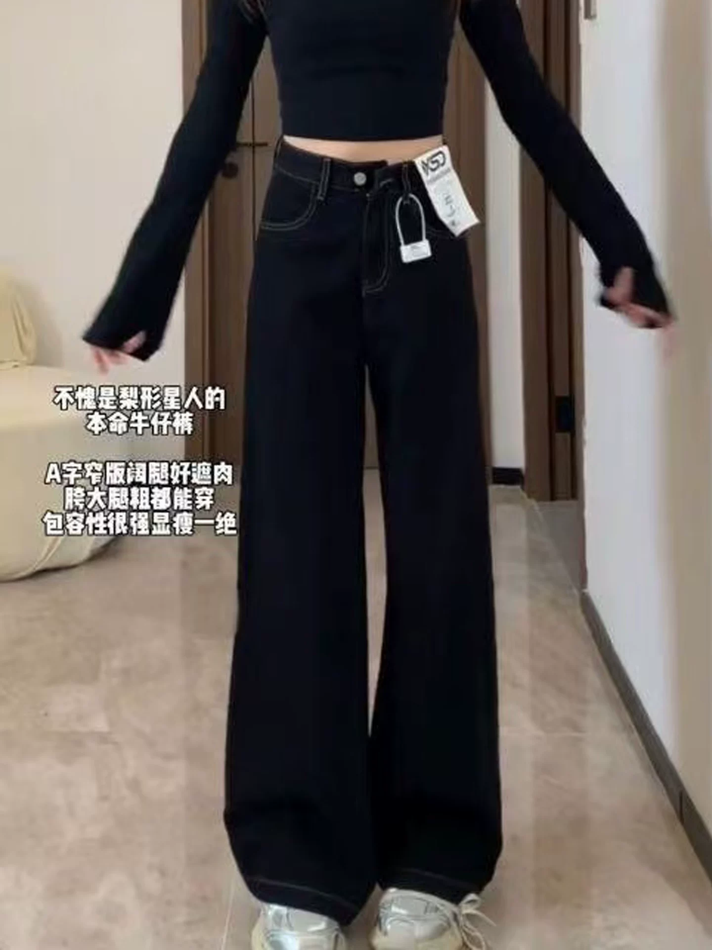 Quần jean ống loe bằng vải lụa băng dành cho nữ, kiểu dáng mỏng mùa hè, cỡ lớn, lưng cao, che hông, mềm mại, tôn dáng, quần ống loe không bó sát