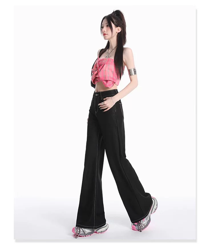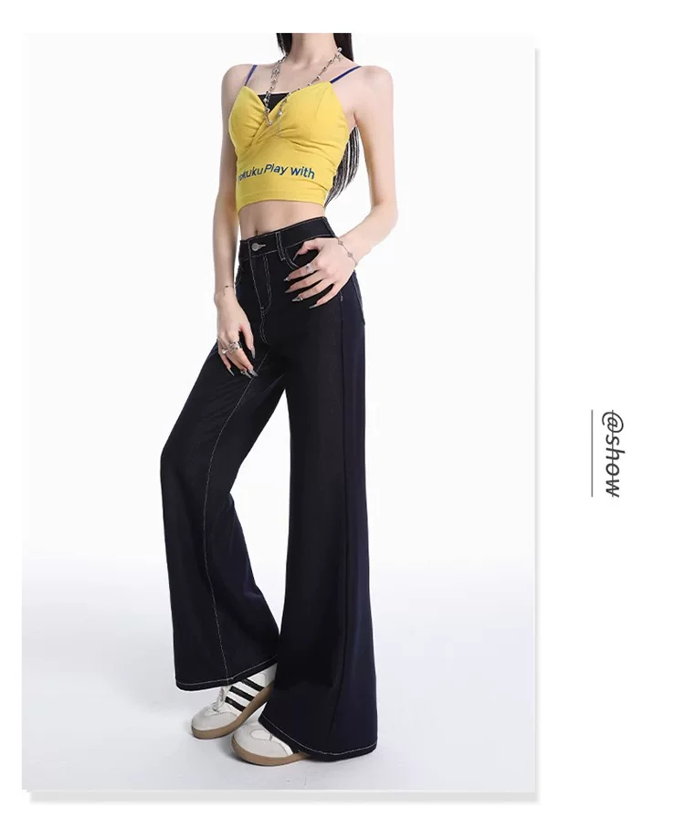 - Quần jean ống loe bằng vải lụa băng dành cho nữ, kiểu dáng mỏng mùa hè, cỡ lớn, lưng cao, mềm mại, tôn dáng, tạo cảm giác mát mẻ, quần ống chuông