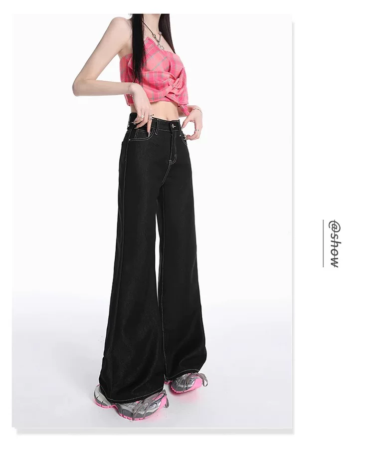 Quần jean ống loe bằng vải lụa băng dành cho nữ, kiểu dáng mỏng mùa hè, cỡ lớn, lưng cao, mềm mại, tôn dáng, tạo cảm giác mát mẻ, quần ống chuông