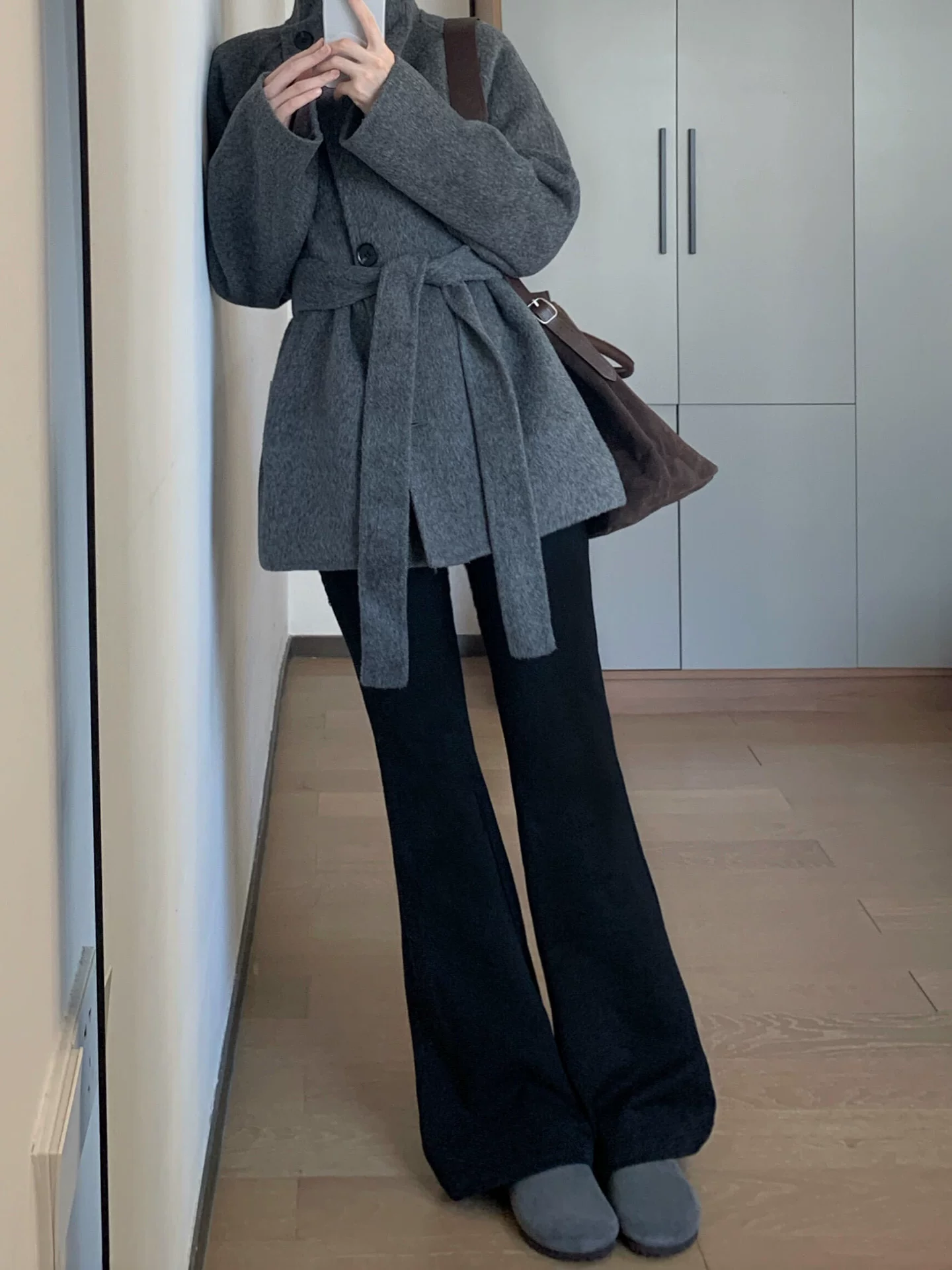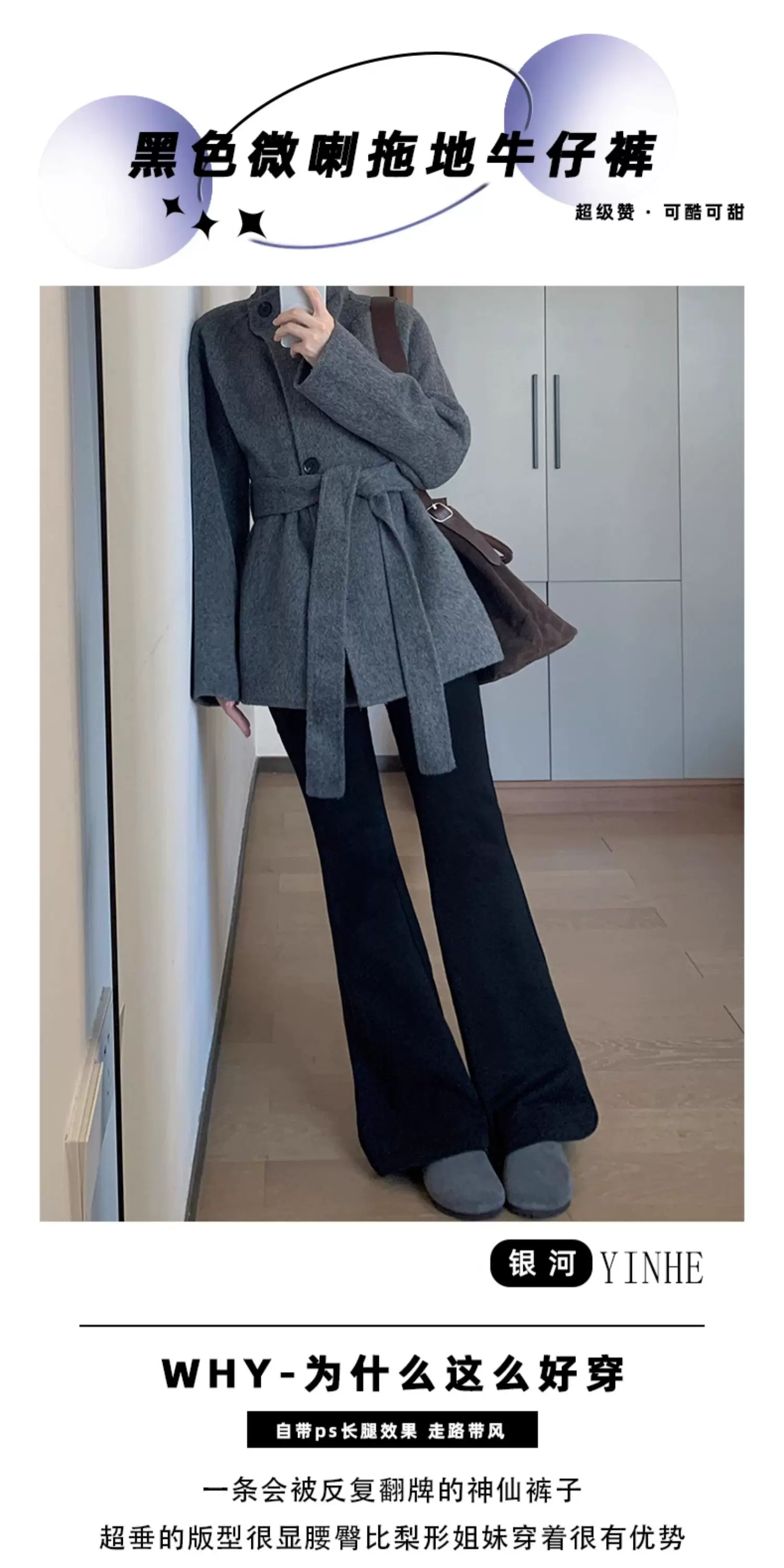 - Quần jean ống loe co giãn lưng cao màu đen dành cho nữ, mùa thu đông, lót lông cừu, cỡ lớn, ôm vừa vặn, không bó sát, kiểu quần móng ngựa