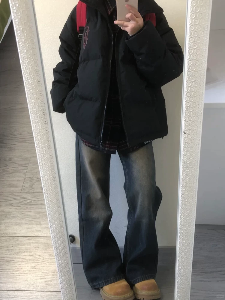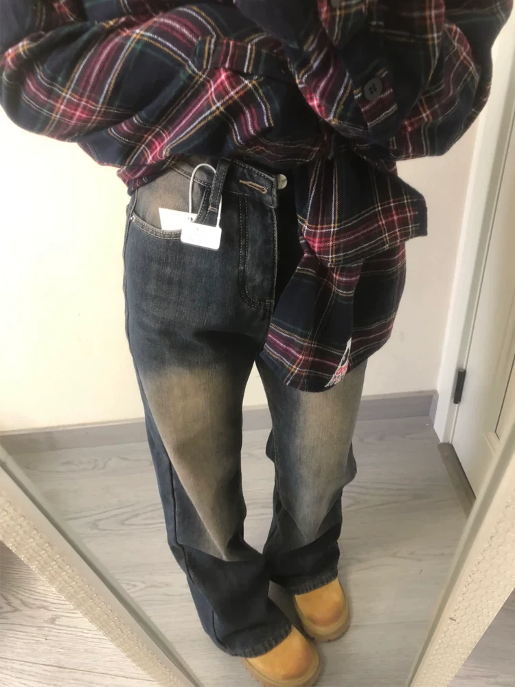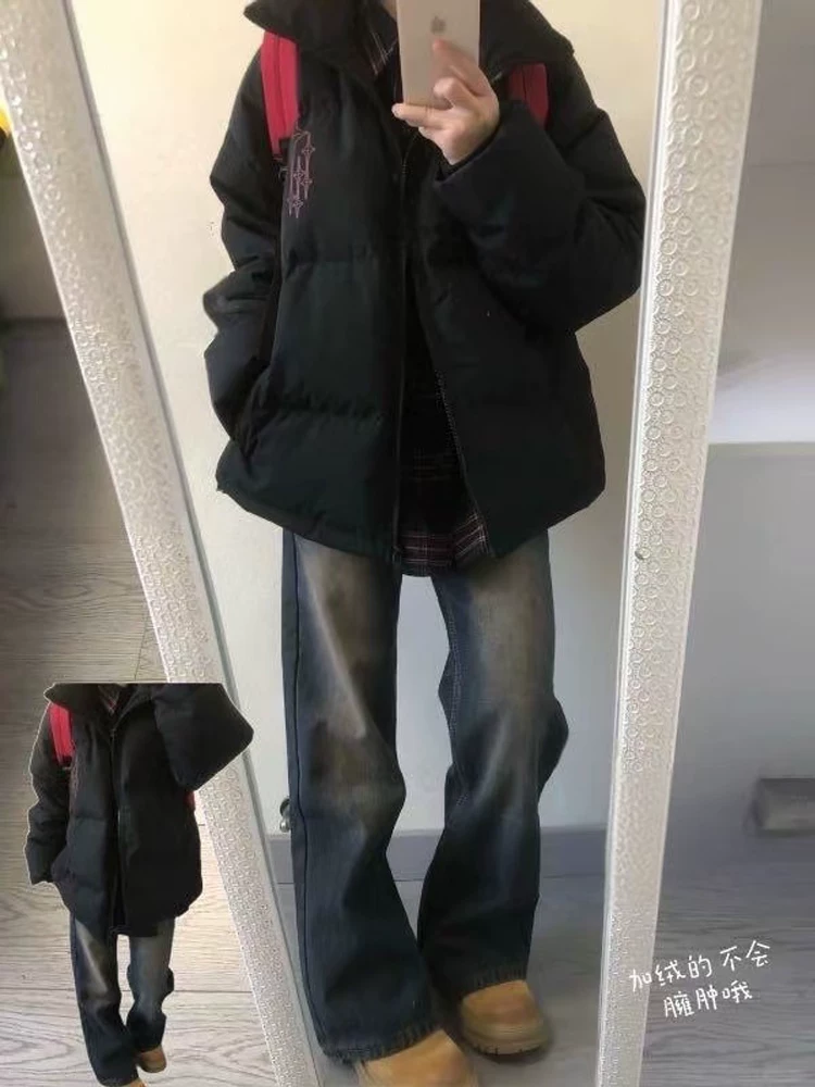 - Quần jean ống loe dày lót lông cừu không co giãn dành cho nữ, phong cách thu đông, cỡ lớn, lưng cao, dáng rộng, giảm béo, quần ống rộng.