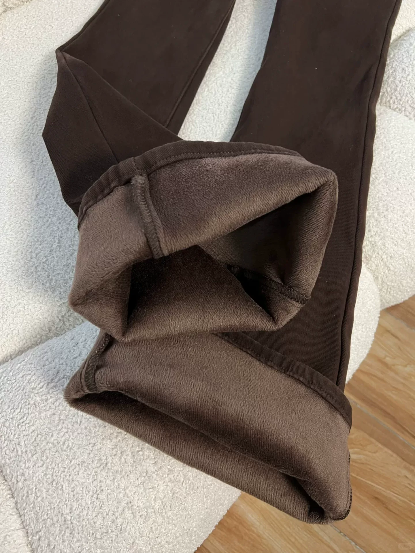 - Quần jean ống loe dày lót lông cừu màu cà phê Melard dành cho nữ, mùa thu đông, cỡ lớn, lưng cao, giảm béo, ống chuông, quần dài đến sàn.