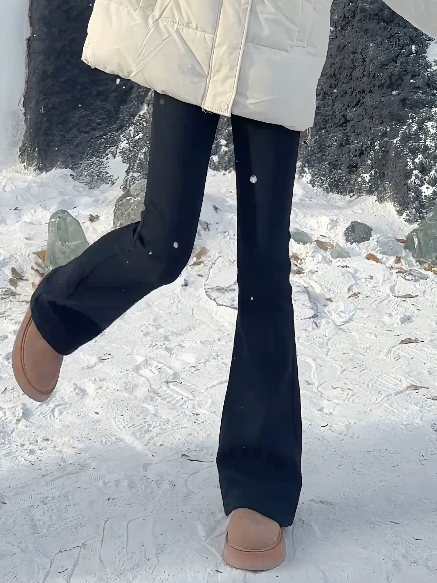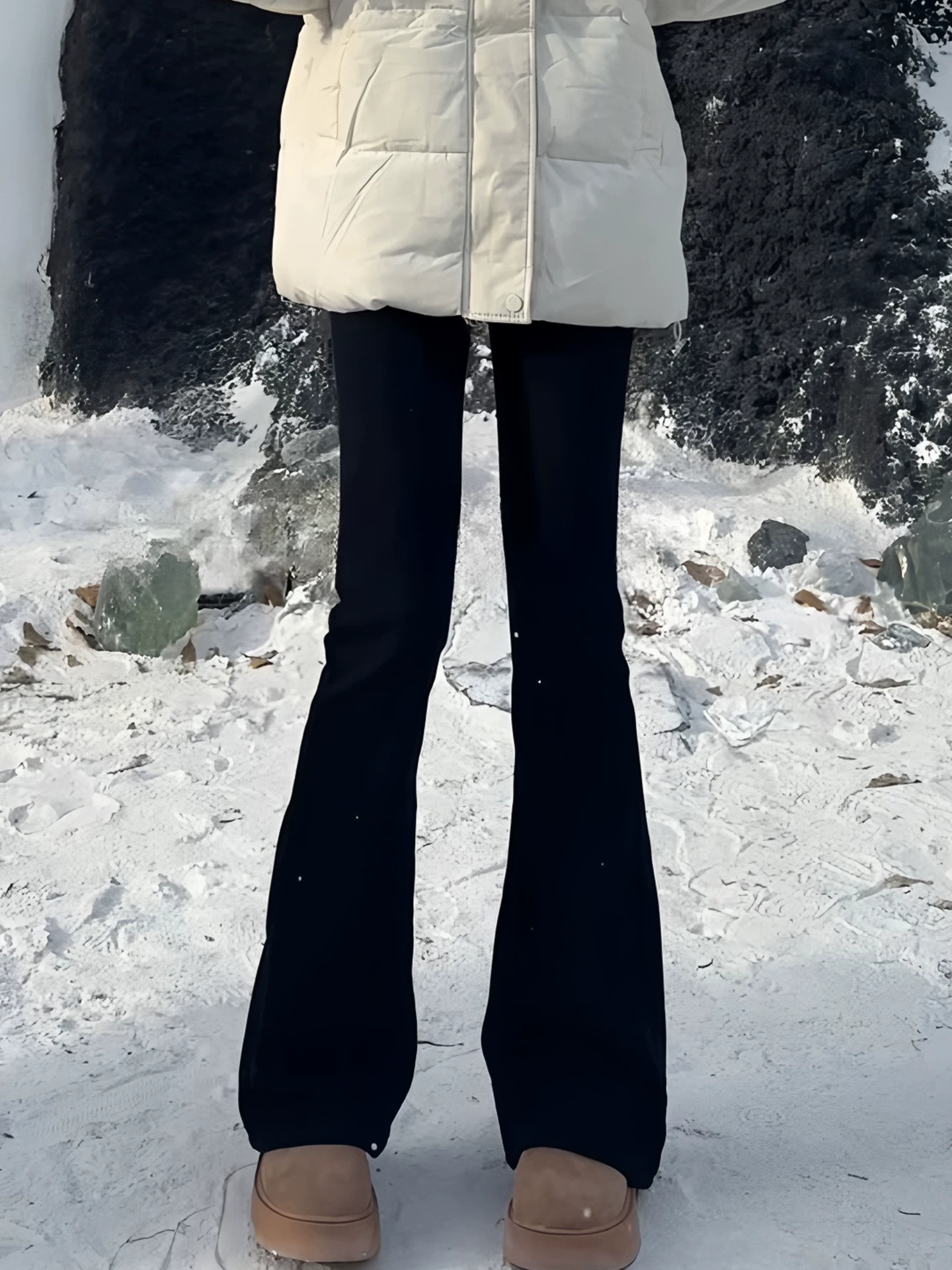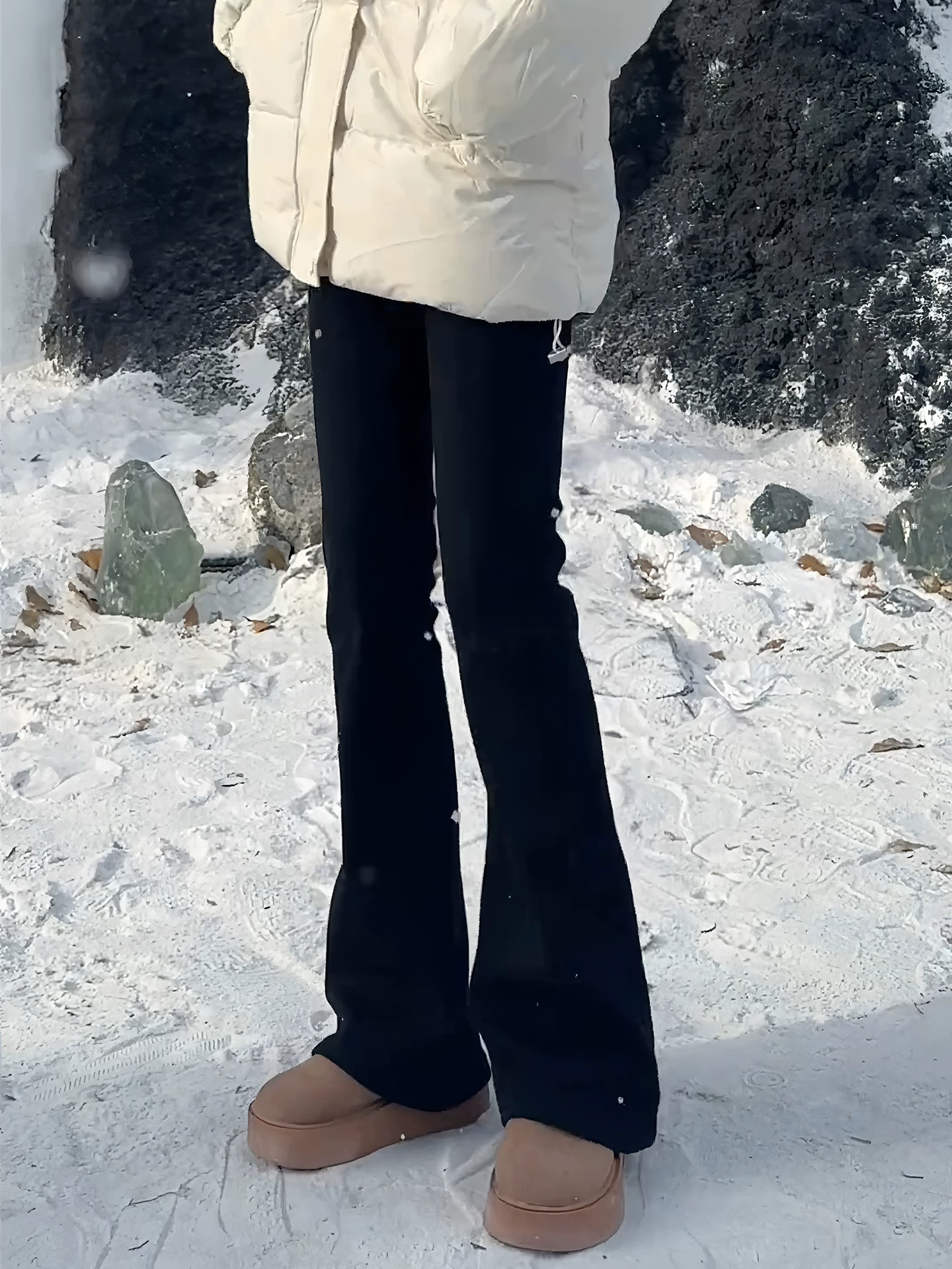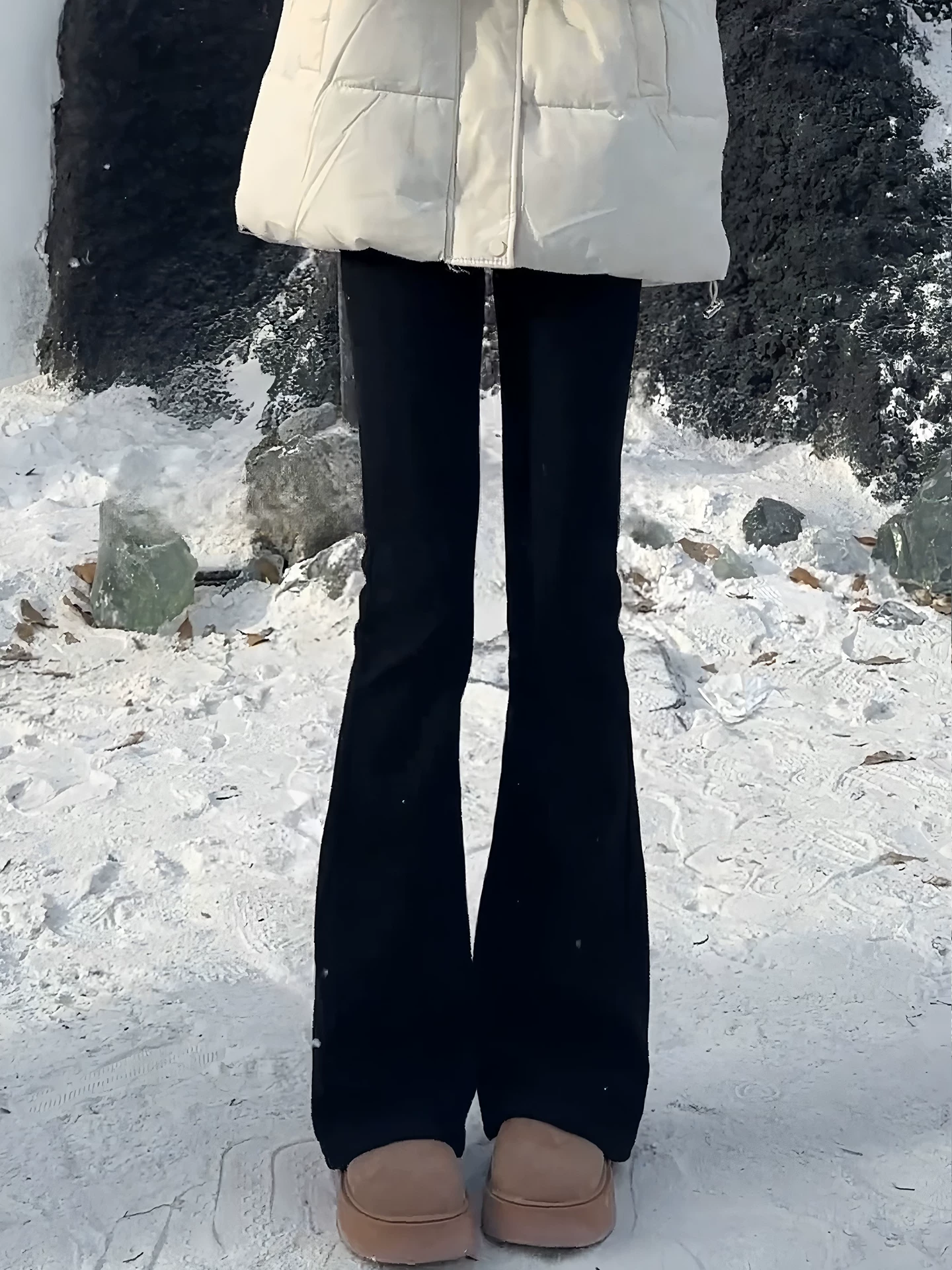 - Quần jean ống loe dày lót lông cừu màu đen dành cho nữ, cỡ lớn mùa đông, cạp cao, co giãn, ôm dáng, tôn dáng, quần ống chuông co giãn.