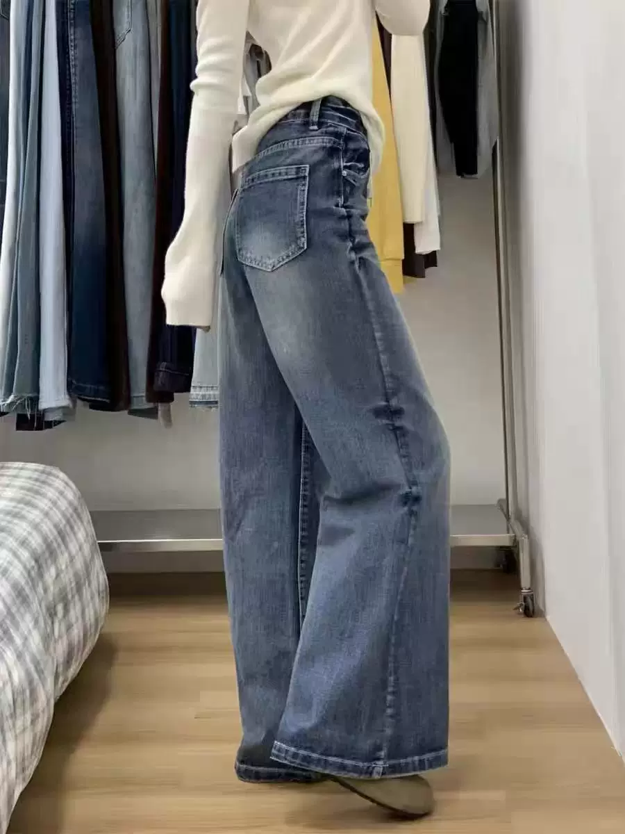 Quần jean ống loe kiểu Mỹ dành cho nữ, bộ sưu tập mùa xuân mới, cỡ lớn, lưng cao, dáng rộng, thon gọn, ống chuông, ống thẳng, quần dài chạm sàn