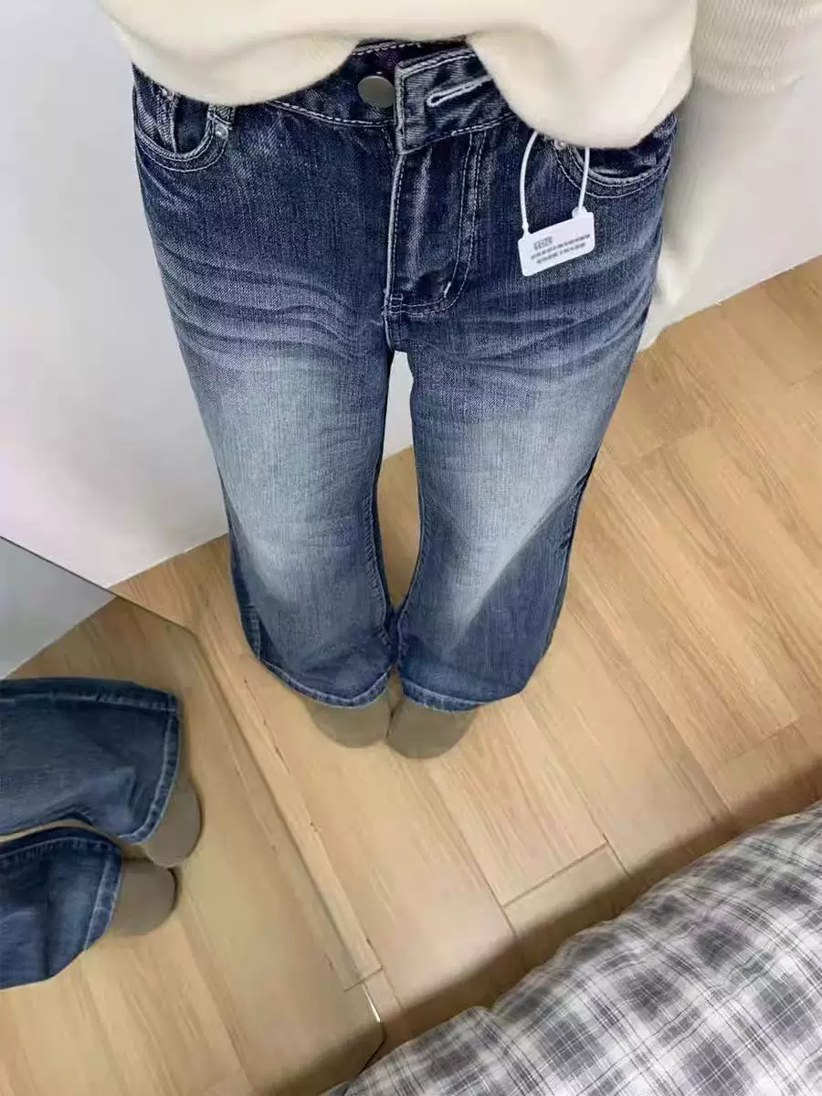 - Quần jean ống loe kiểu Mỹ dành cho nữ, bộ sưu tập mùa xuân mới, cỡ lớn, lưng cao, dáng rộng, thon gọn, ống chuông, ống thẳng, quần dài chạm sàn