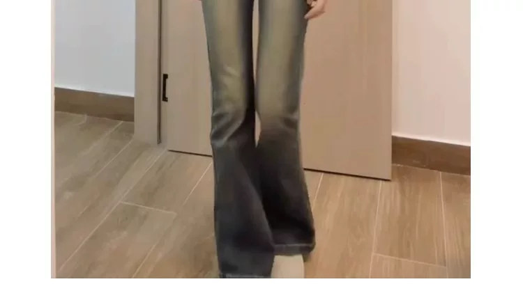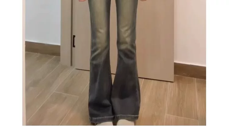 - Quần jean ống loe kiểu Mỹ dành cho nữ, đầu thu, cỡ lớn, lưng cao, co giãn, giảm béo, dáng quả lê, quần ống loe
