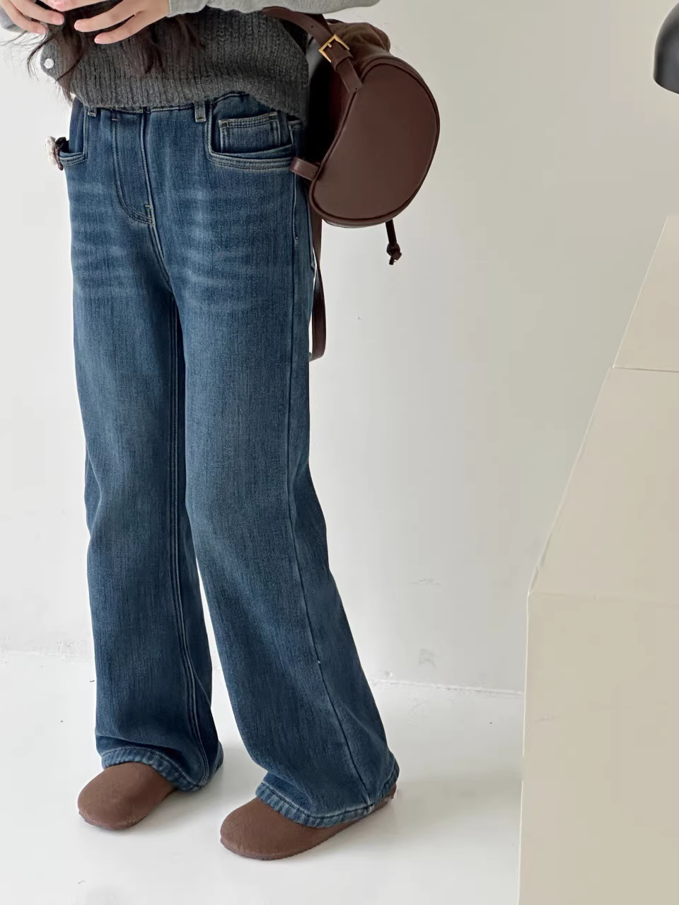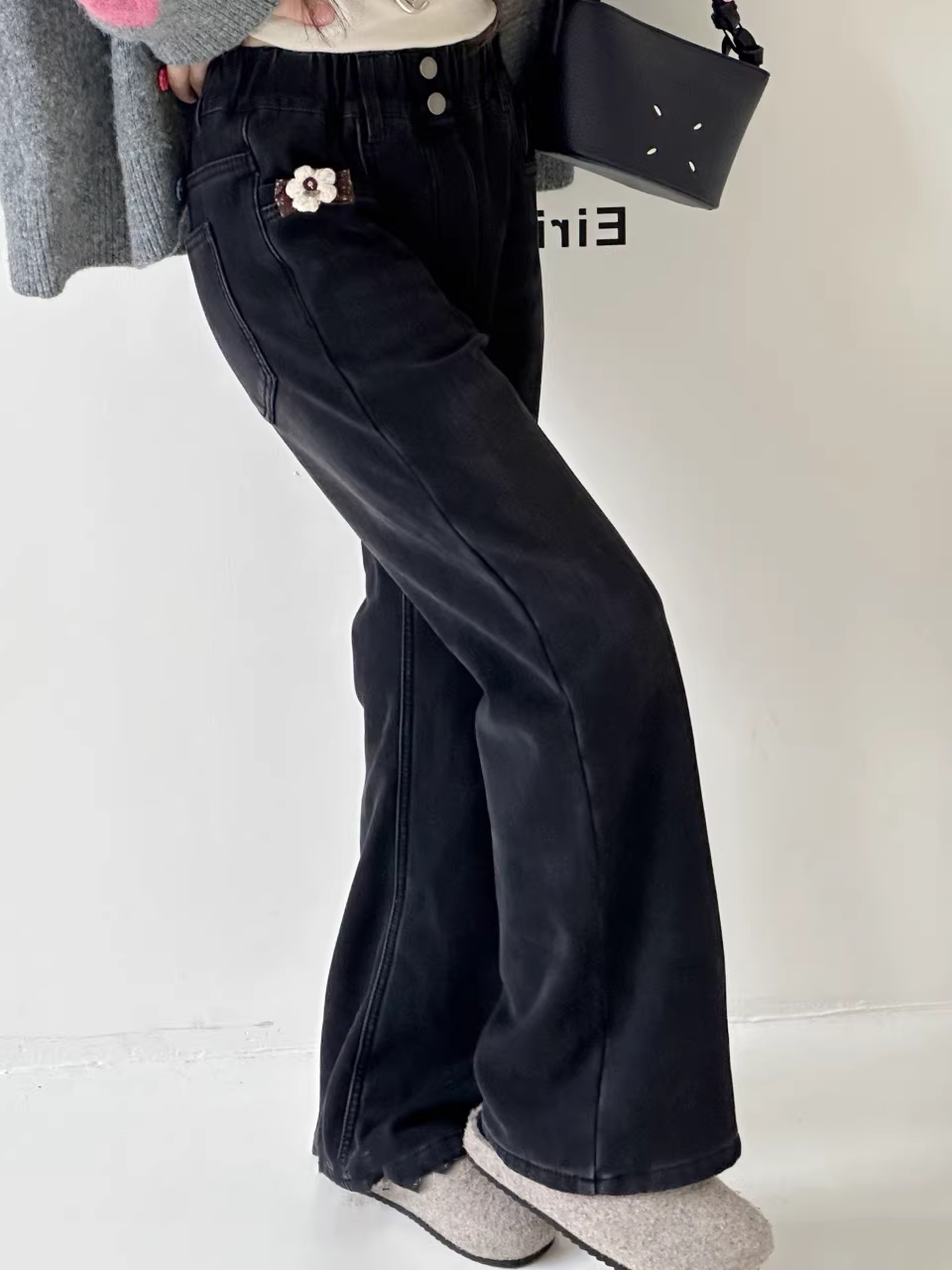- Quần jean ống loe lót lông cừu dành cho bé gái giúp bạn trông cao và thon gọn hơn, phong cách mới mùa đông 2025, phiên bản Hàn Quốc, quần thường ngày lót lông cừu dành cho trẻ lớn hơn.