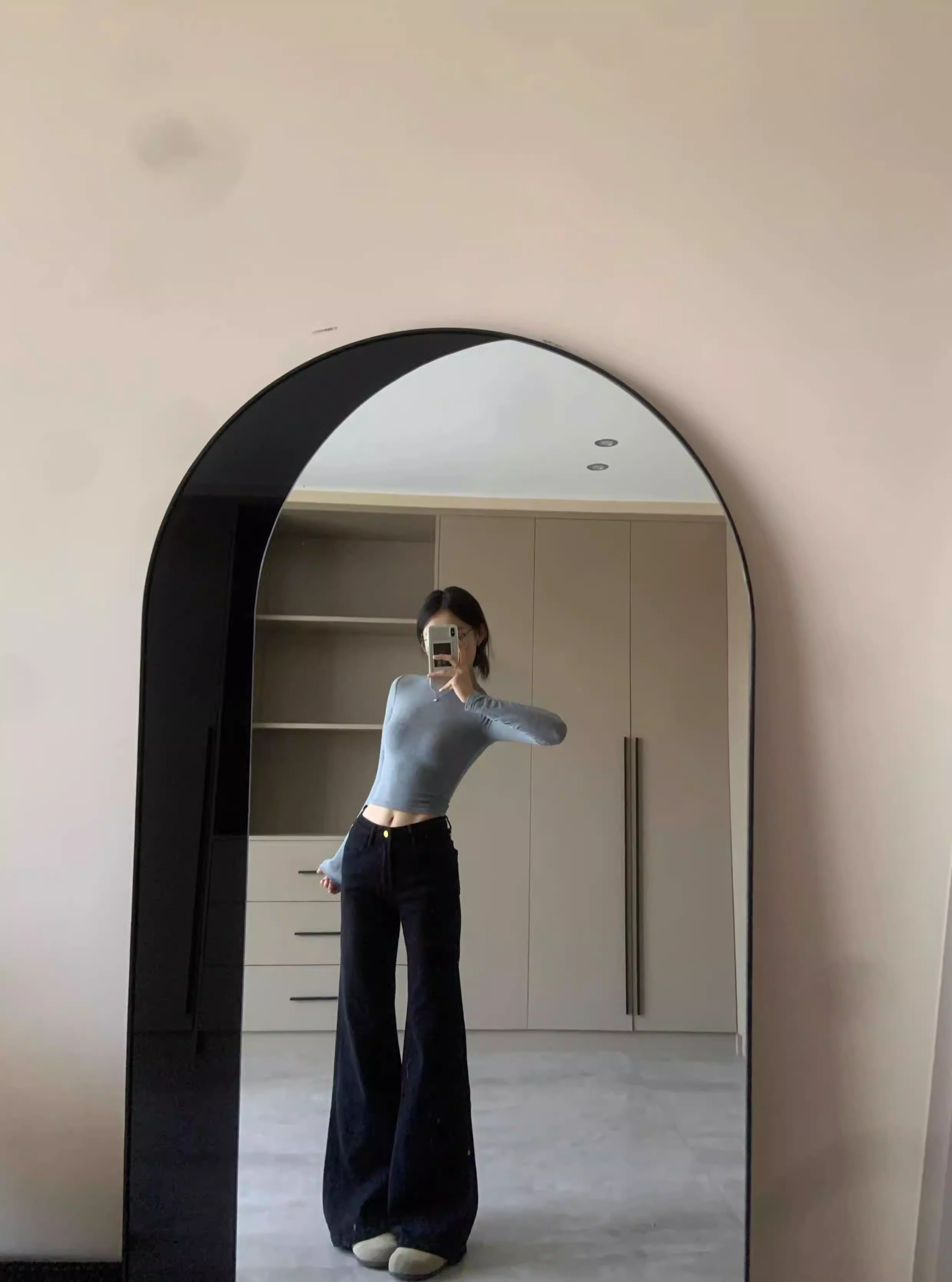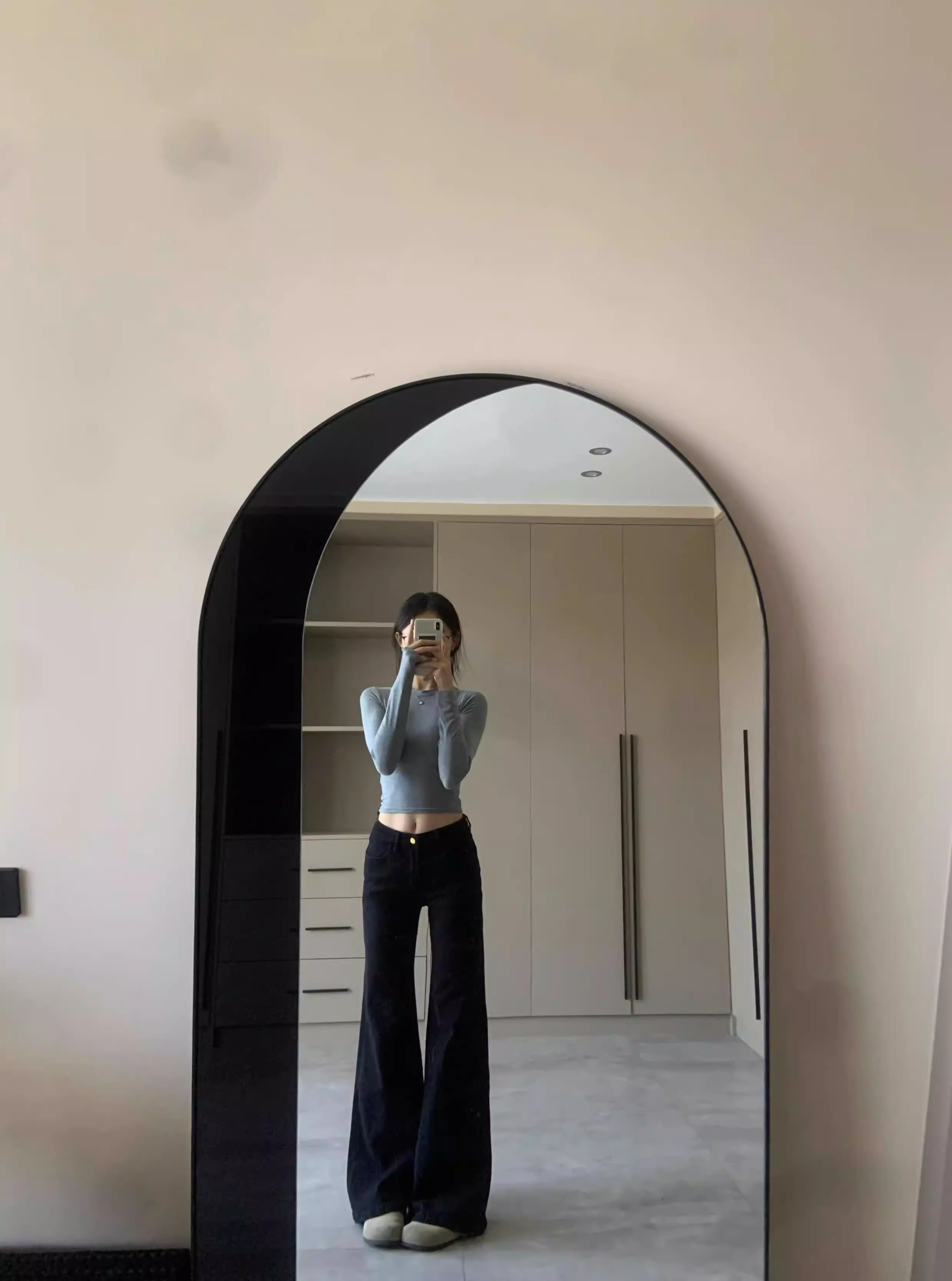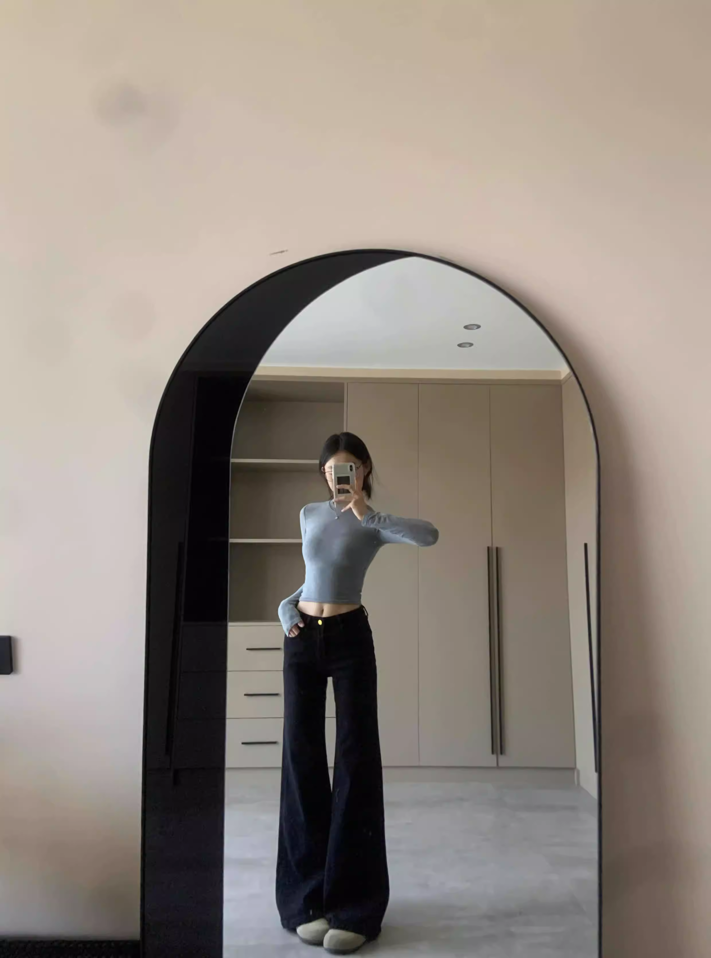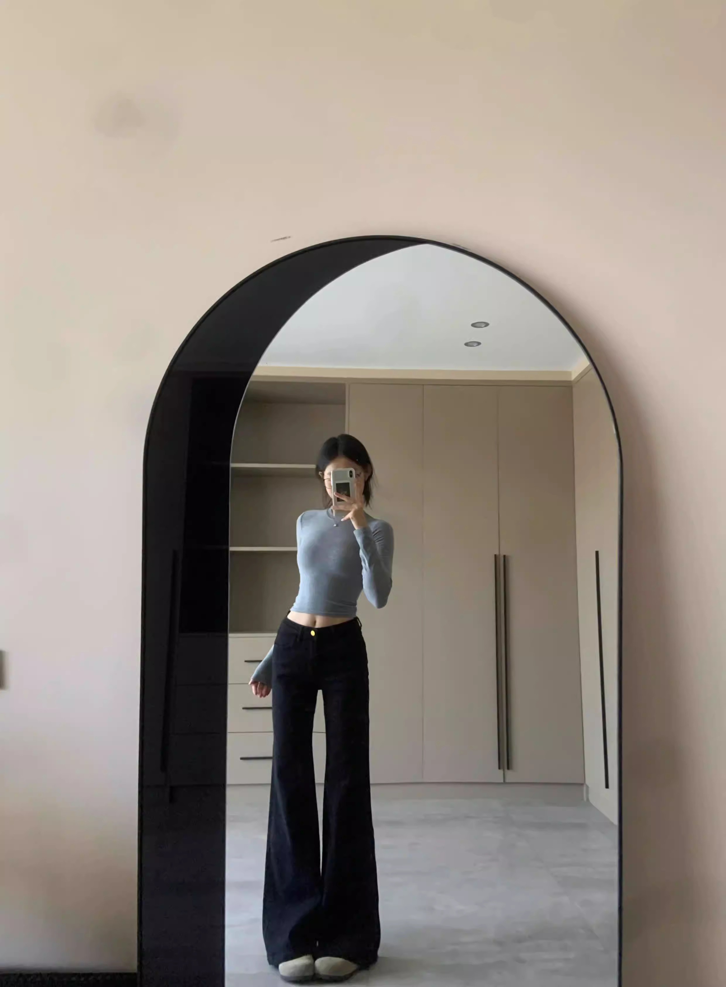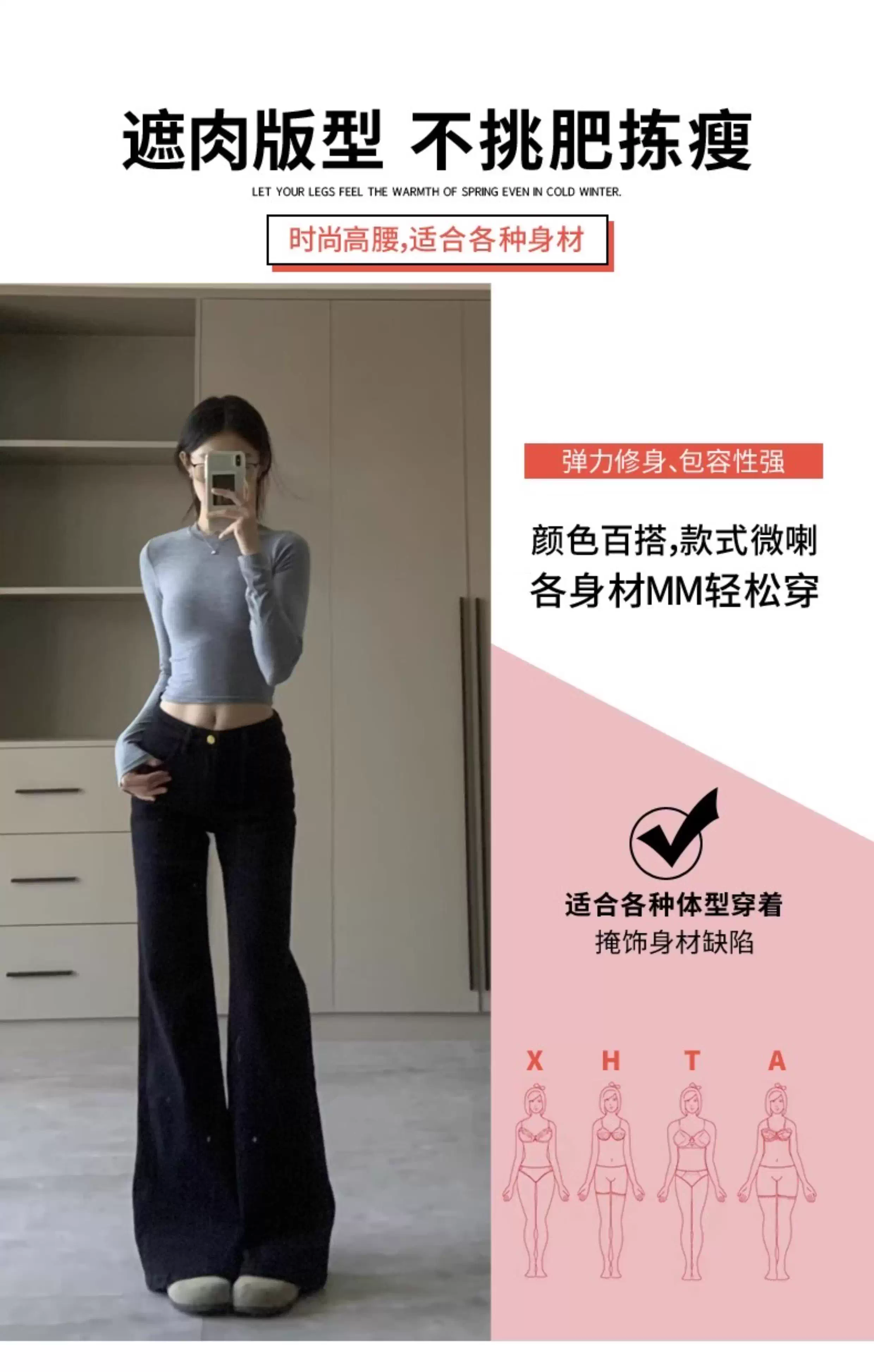 - Quần jean ống loe lót lông cừu đen La Chapelle dành cho nữ, mẫu mới thu đông 2025, cạp cao, ôm dáng, chất liệu co giãn.