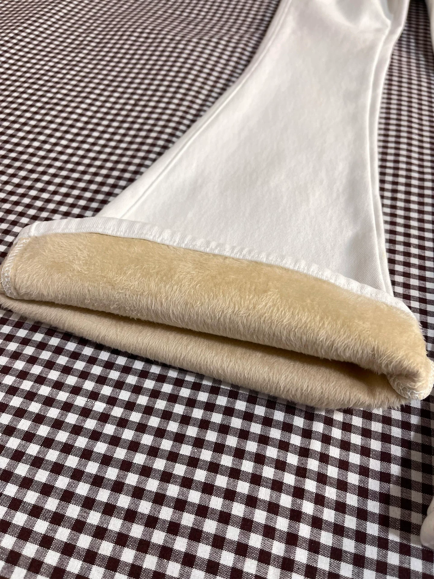 - Quần jean ống loe lót lông cừu màu trắng dành cho nữ, mùa thu đông, cỡ lớn, lưng cao, co giãn, che hông, giảm béo, quần dài ống loe