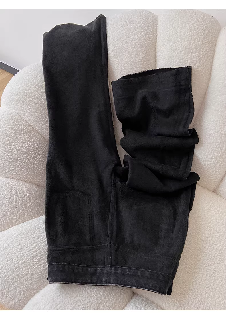 - Quần jean ống loe lót lông màu đen và xám La Chapelle dành cho nữ, mùa thu đông 2025, kiểu mới cạp cao dày dặn