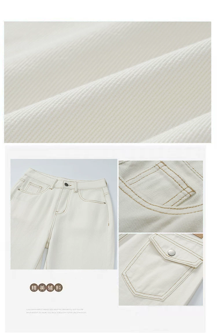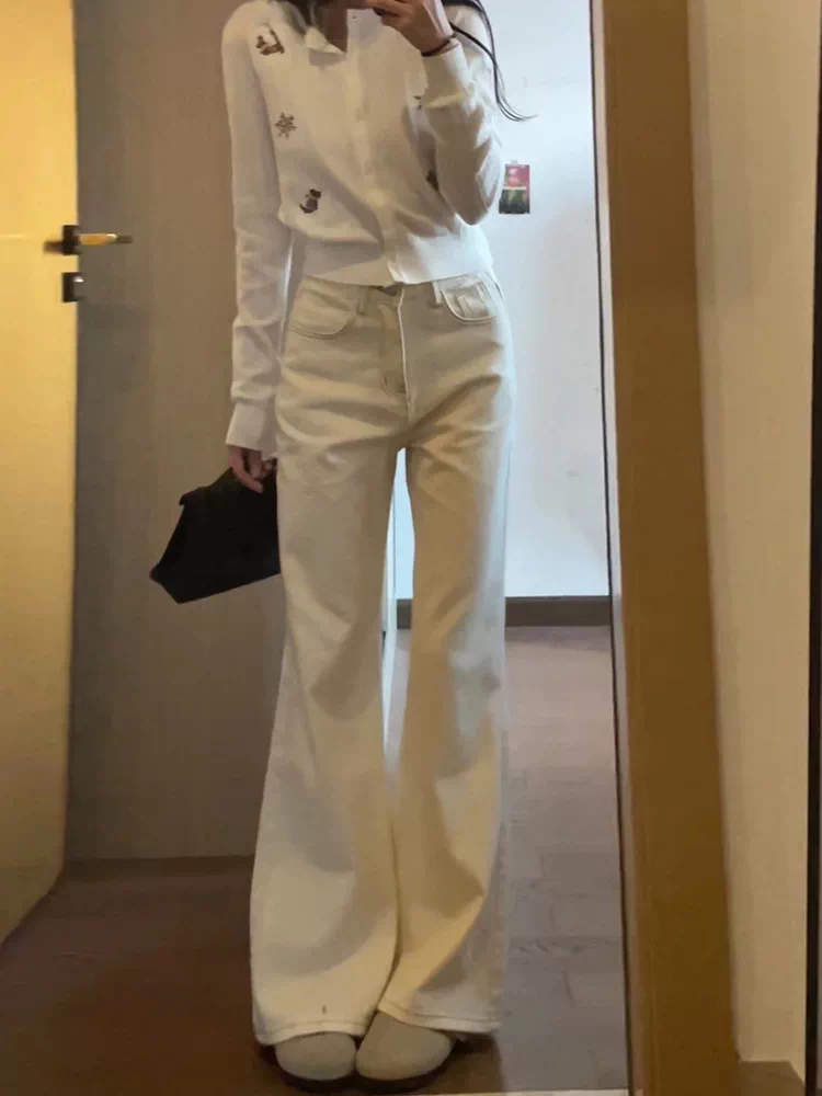 - Quần jean ống loe lót lông màu trắng nhạt dành cho nữ, mùa thu đông, cỡ lớn, lưng cao, giảm béo, dáng suôn, quần ống loe không bó sát