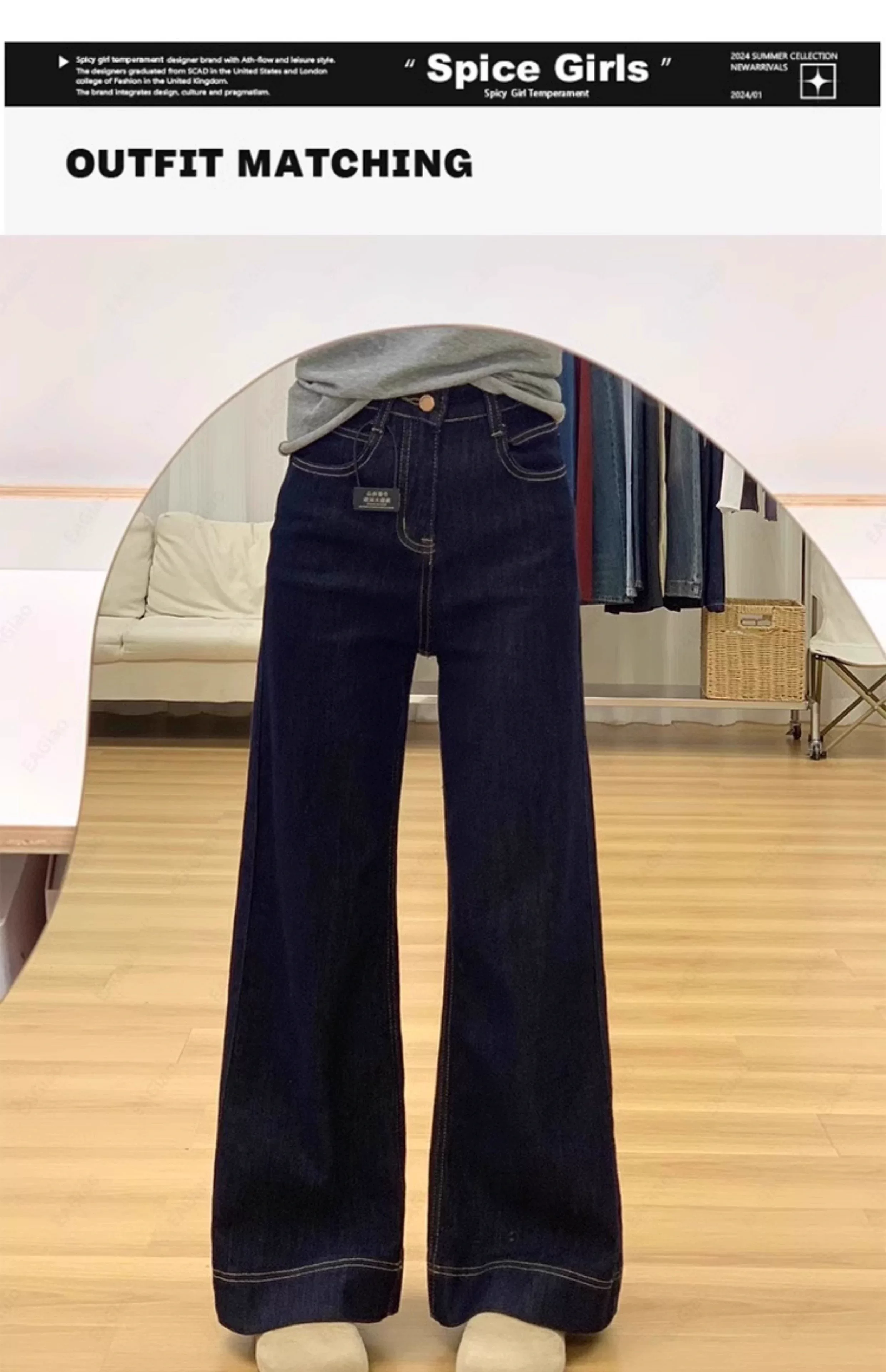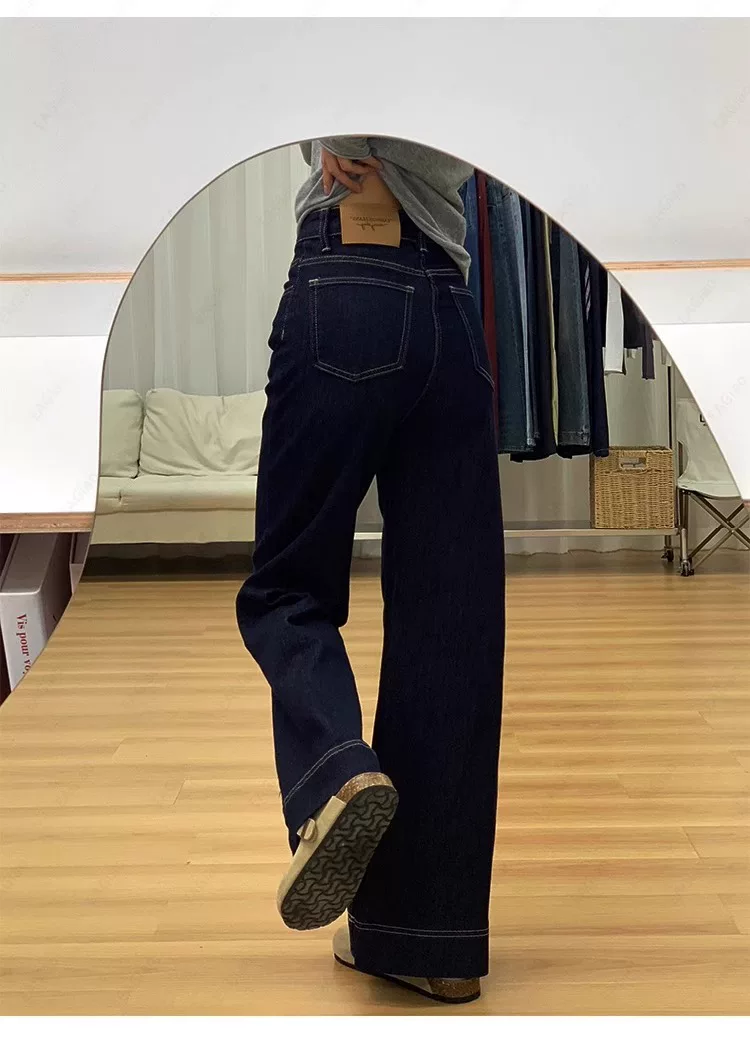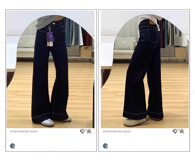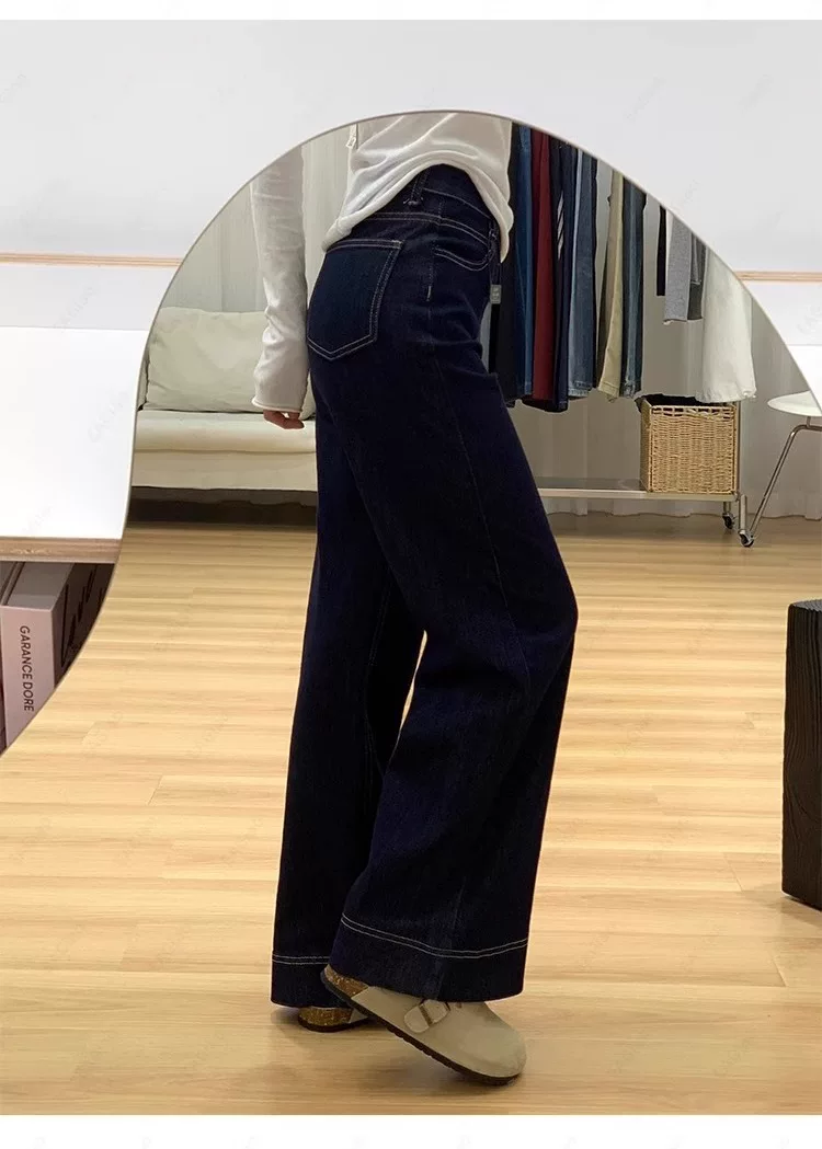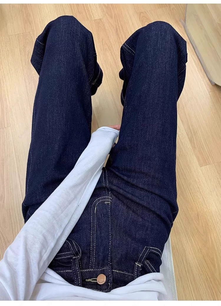 - Quần jean ống loe lót lông màu xanh đậm dành cho nữ, mùa thu đông, cỡ lớn, lưng cao, co giãn, che hông, giảm béo, quần ống loe.