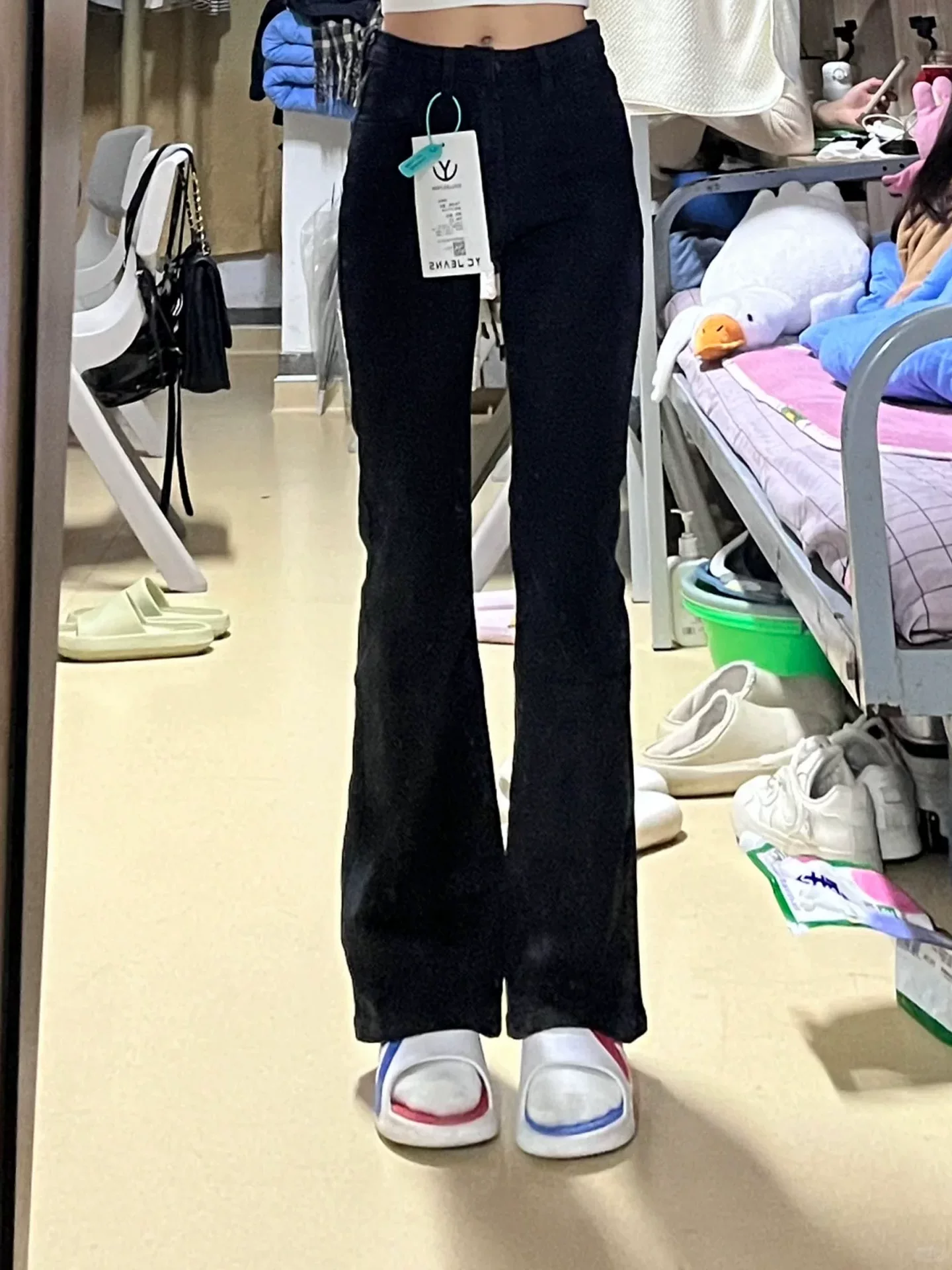 - Quần jean ống loe lưng cao dành cho nữ, mùa thu, cỡ lớn, che hông, co giãn, tôn dáng, mềm mại, phù hợp với dáng người quả lê, quần ống chuông