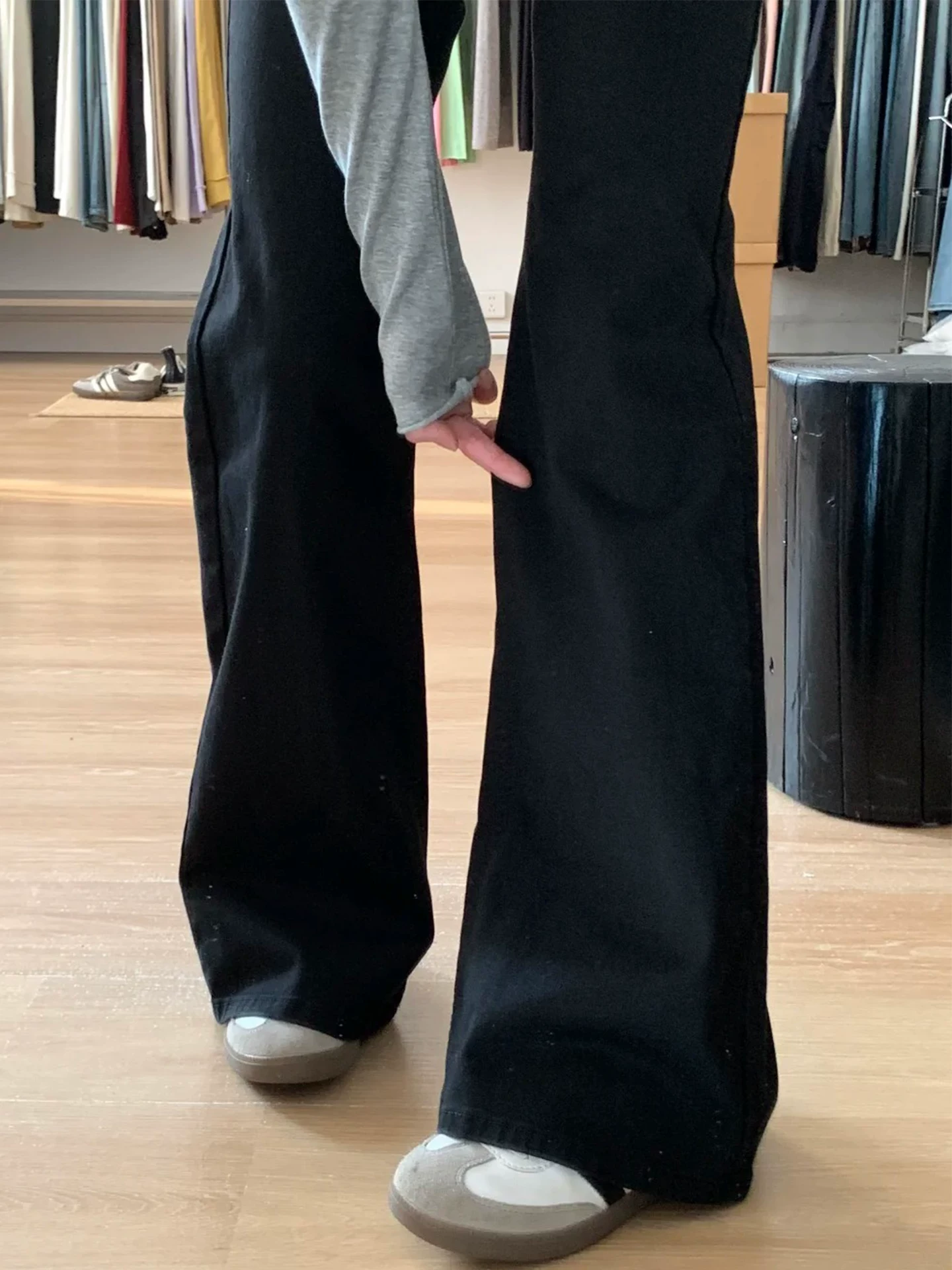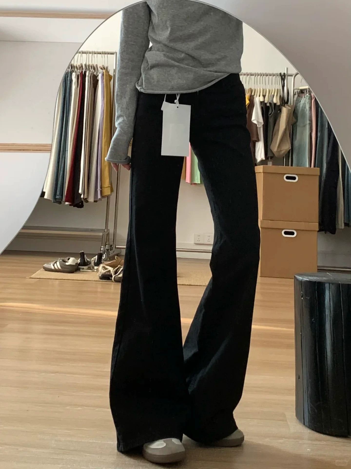 - Quần jean ống loe màu đen dành cho nữ, mùa thu, cỡ lớn, lưng cao, co giãn, che hông, dáng quả lê, quần chuông tôn dáng