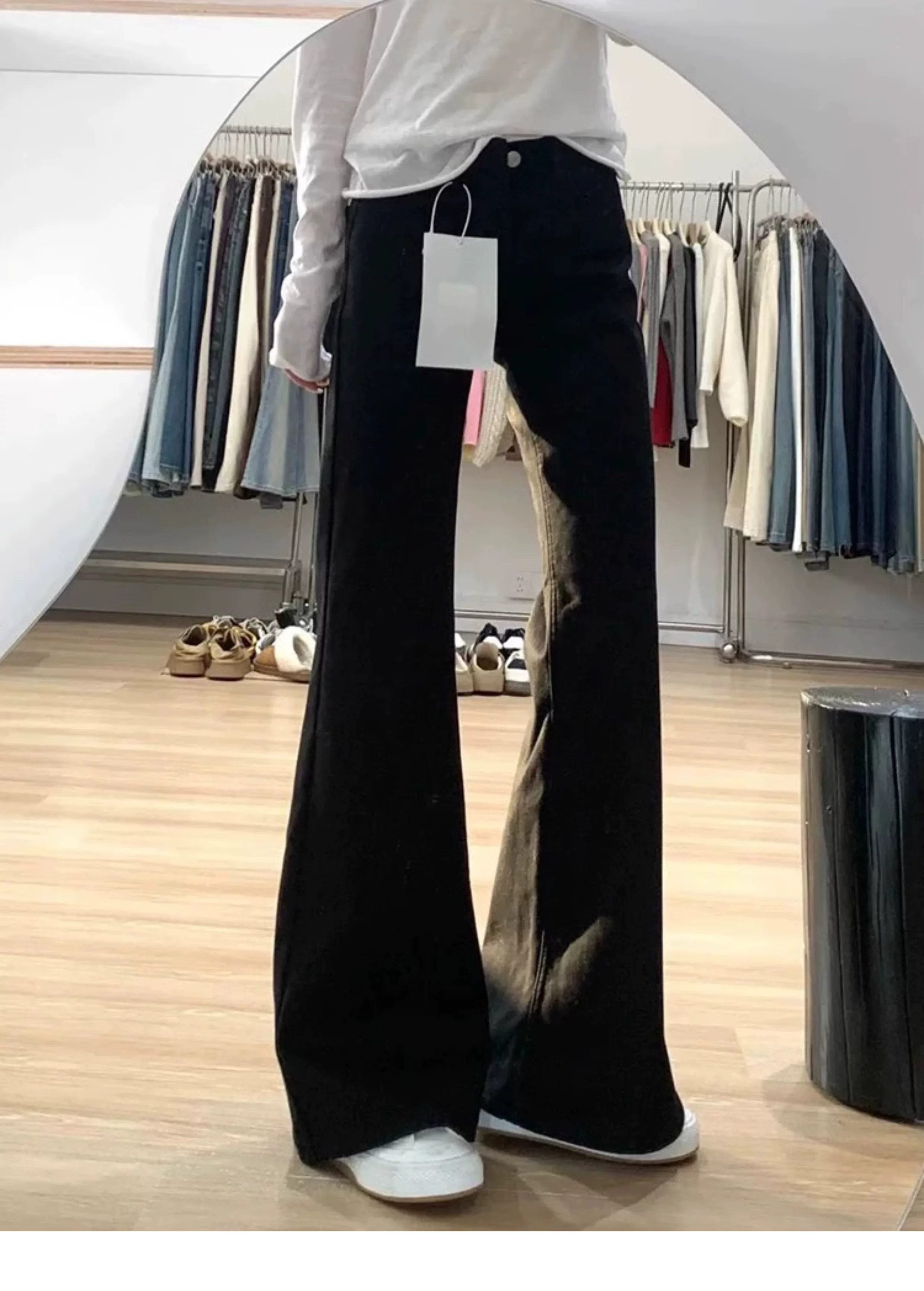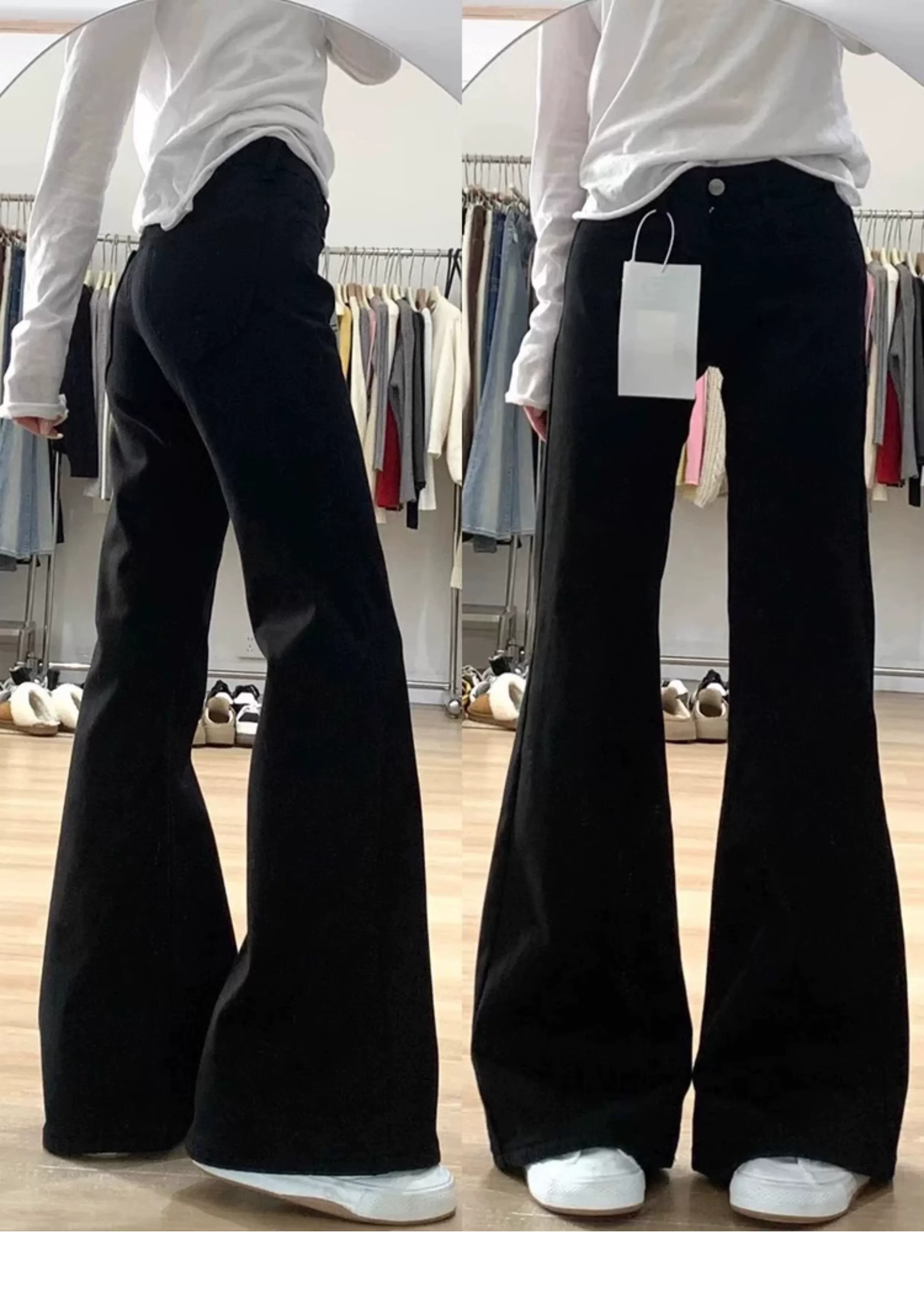 - Quần jean ống loe màu đen dành cho nữ, phong cách đầu thu, cỡ lớn, lưng cao, co giãn, che hông, giảm béo, dáng quả lê, quần ống chuông
