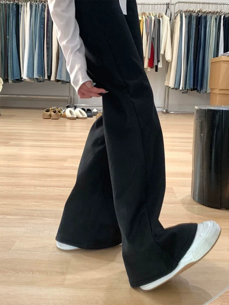 Quần jean ống loe màu đen dành cho nữ, phong cách đầu thu, cỡ lớn, lưng cao, co giãn, che hông, giảm béo, dáng quả lê, quần ống chuông