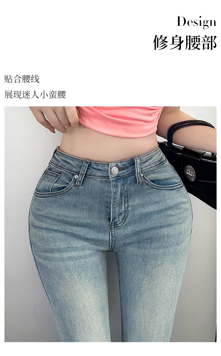 Quần jean ống loe màu trắng cho nữ, xuân thu, tôn hông, hông rộng, người cao, quần cực dài, quần skinny, quần ống loe