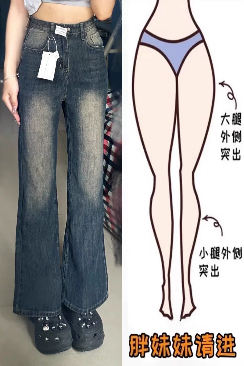 Quần jean ống loe nữ, kiểu mới đầu thu, size lớn, lưng cao, dáng rộng, tôn dáng, dành cho người có thân hình quả lê, quần ống chuông