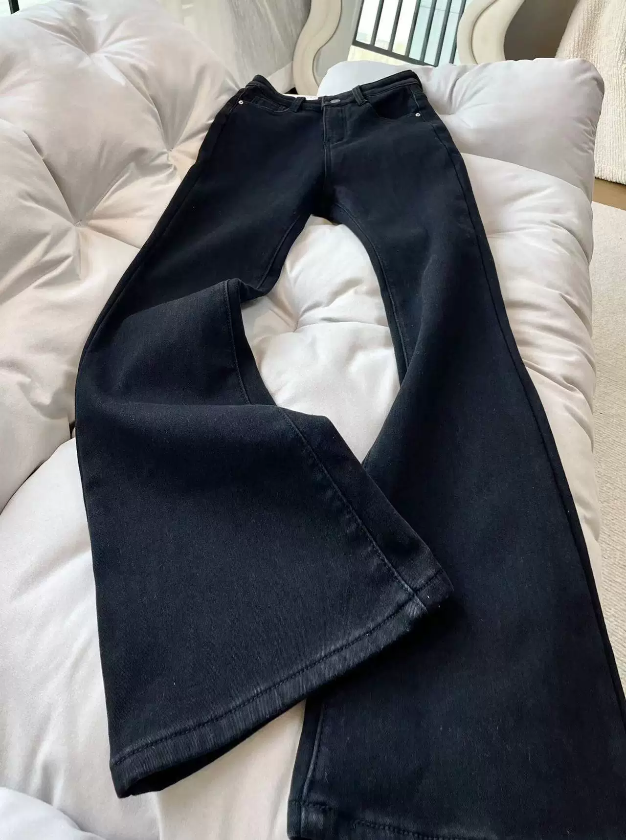- Quần jean ống loe thẳng, dày dặn, lót lông cừu màu xanh cổ điển dành cho nữ, size lớn mùa đông, cạp cao, che hông, chất liệu co giãn.