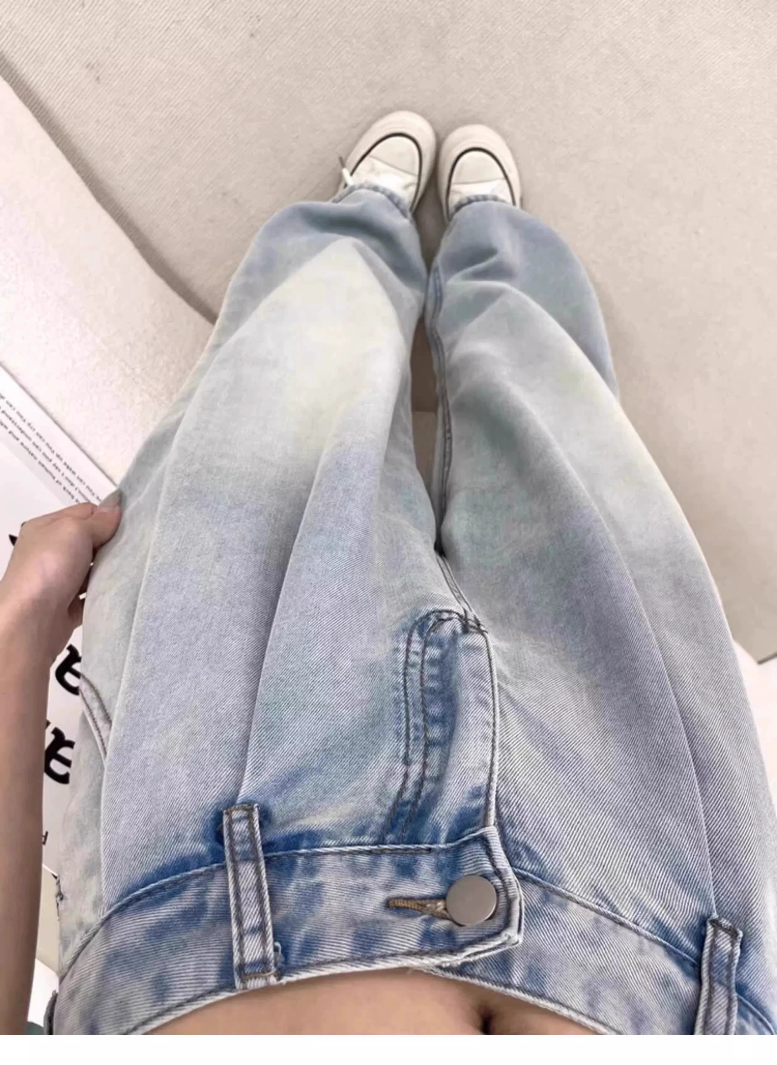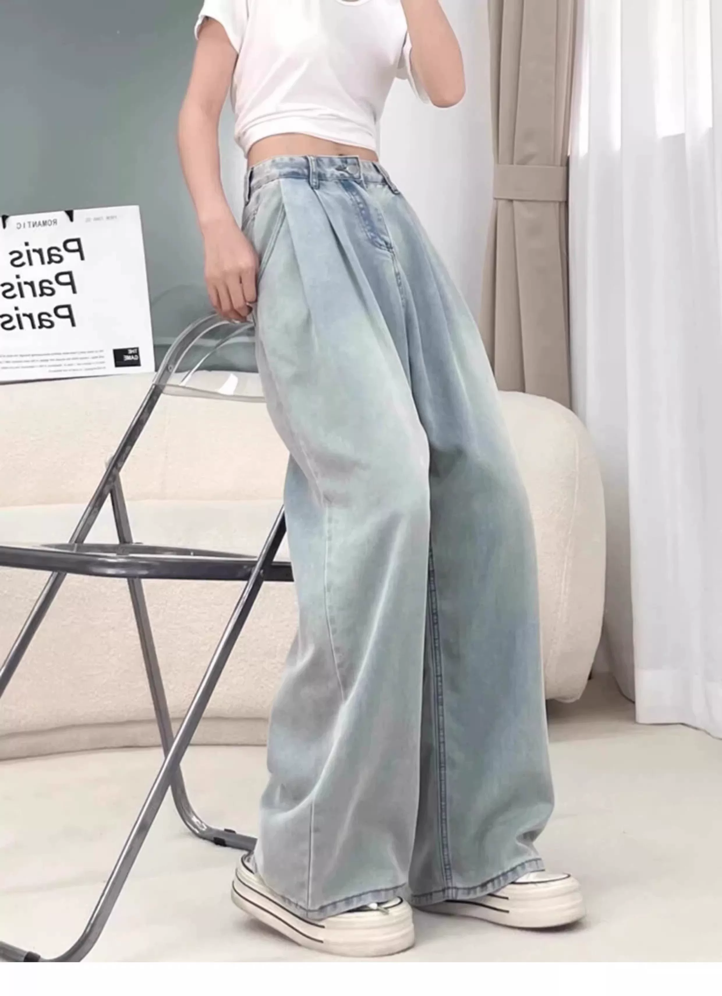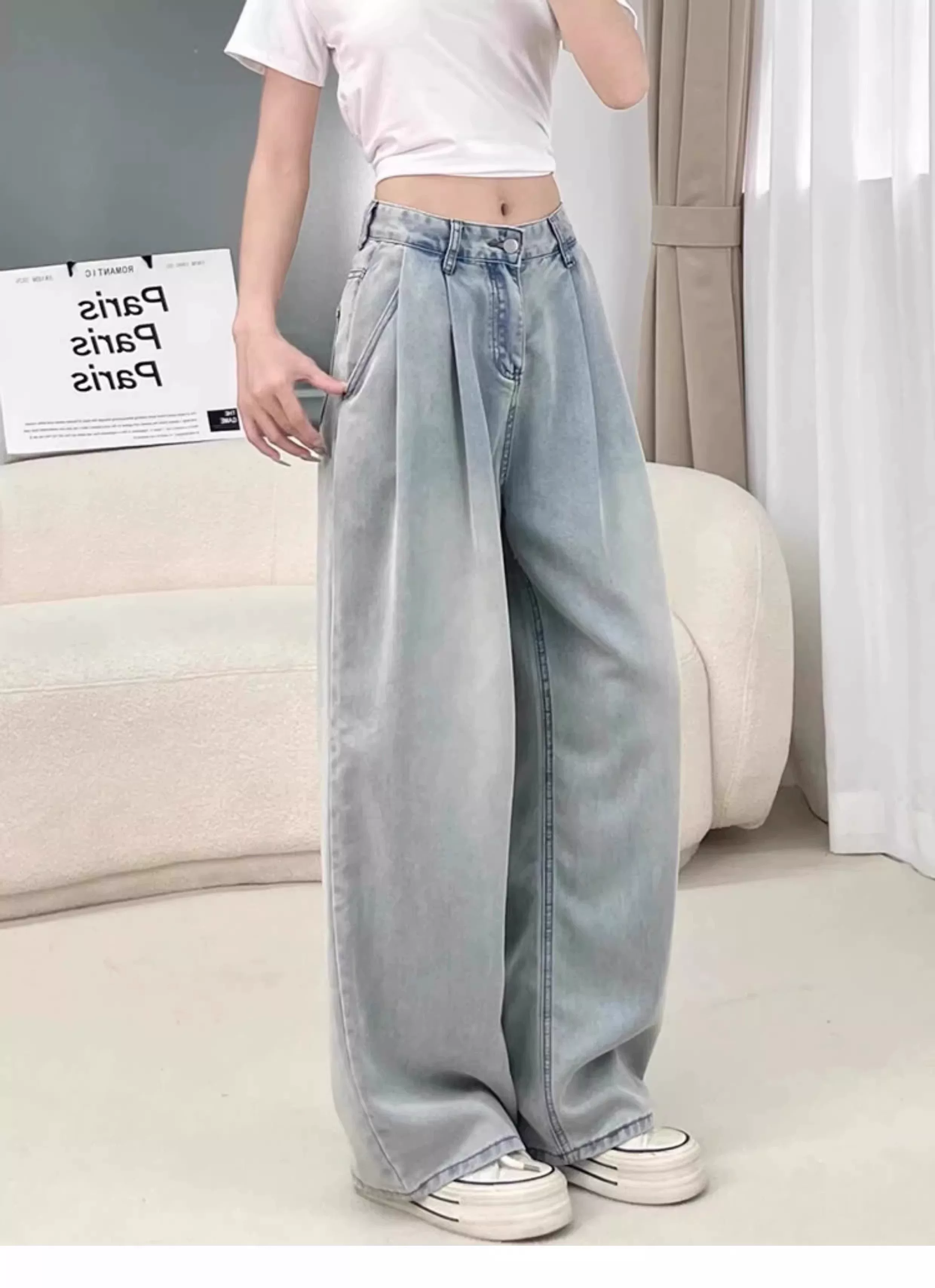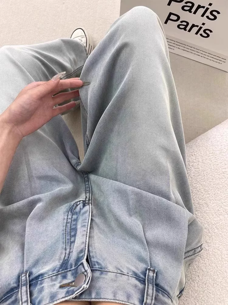 - Quần jean ống rộng bằng vải lụa băng dành cho nữ, kiểu dáng mỏng mùa hè, cỡ lớn, lưng cao, dáng rộng, mềm mại, tôn dáng, quần dài bằng vải Tencel